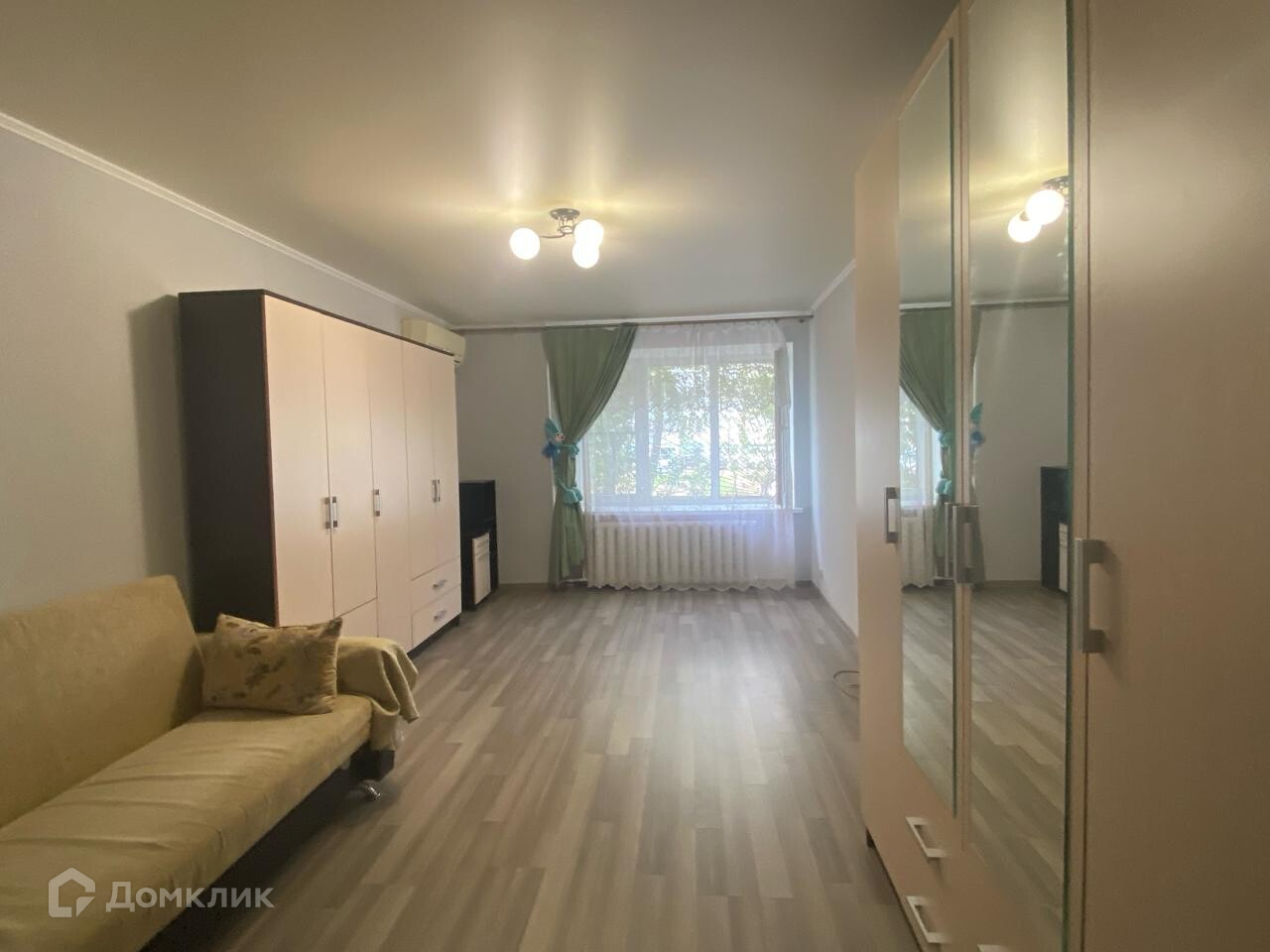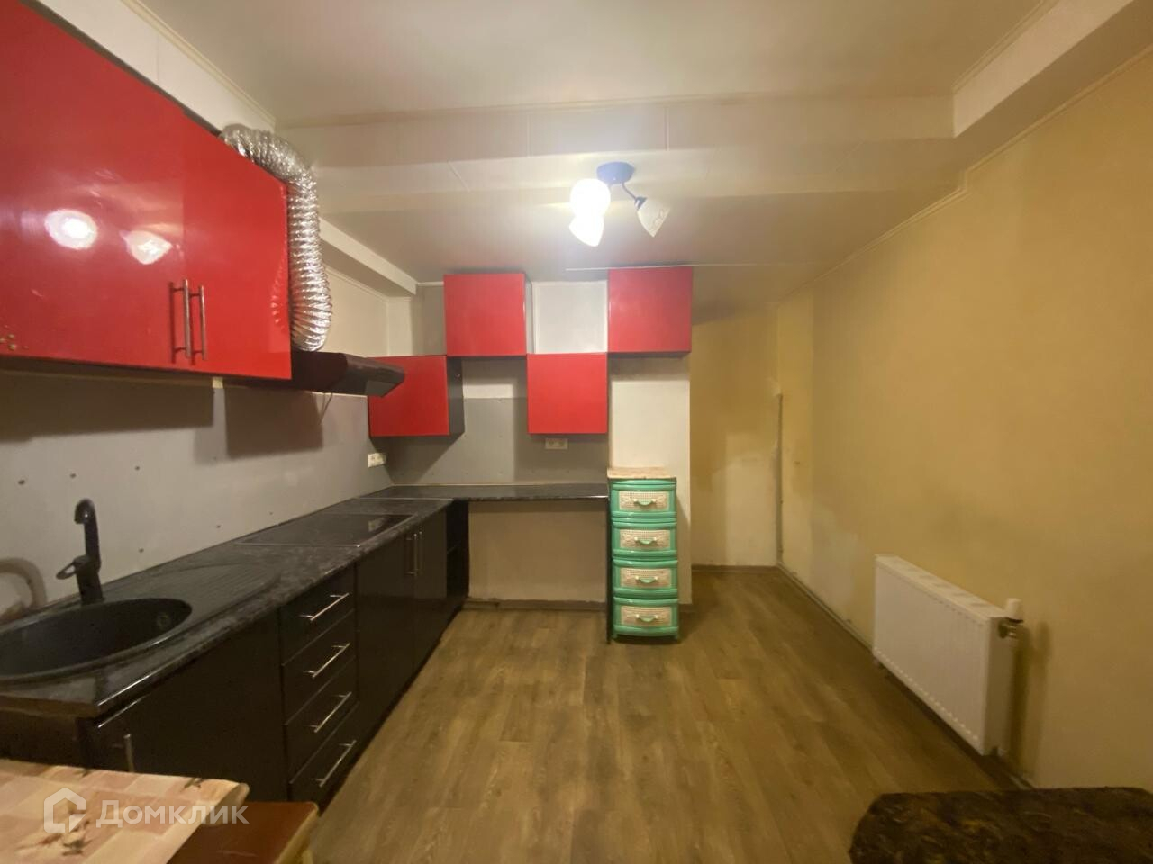 В комнате сделан свежий ремонт, в остальных помещениях ремонт старый. В кухне нет окна.