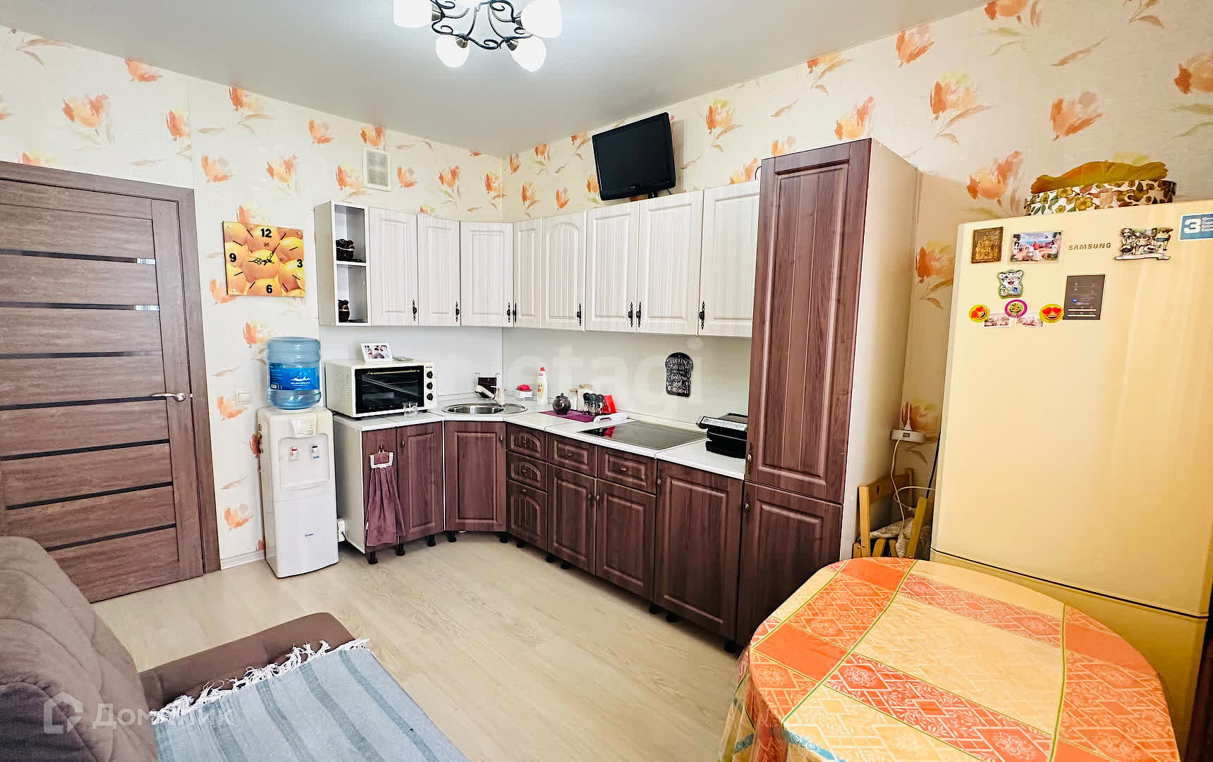 Квартира тёплая, хорошая шумоизоляция. Перепланировок нет, рядом, школа, детские сады. В квар-тире установлены индивидуальные счётчики на эл.энергию, воду и отопление. Из мебели остается кухонный гарнитур, встроенный шкаф-купе.