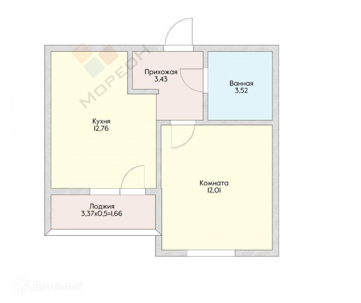 1-комнатная квартира, 35.9 м2, этаж 1 / 9, на продажу в Краснодаре, улица имени Генерала Корнилова, 9к2