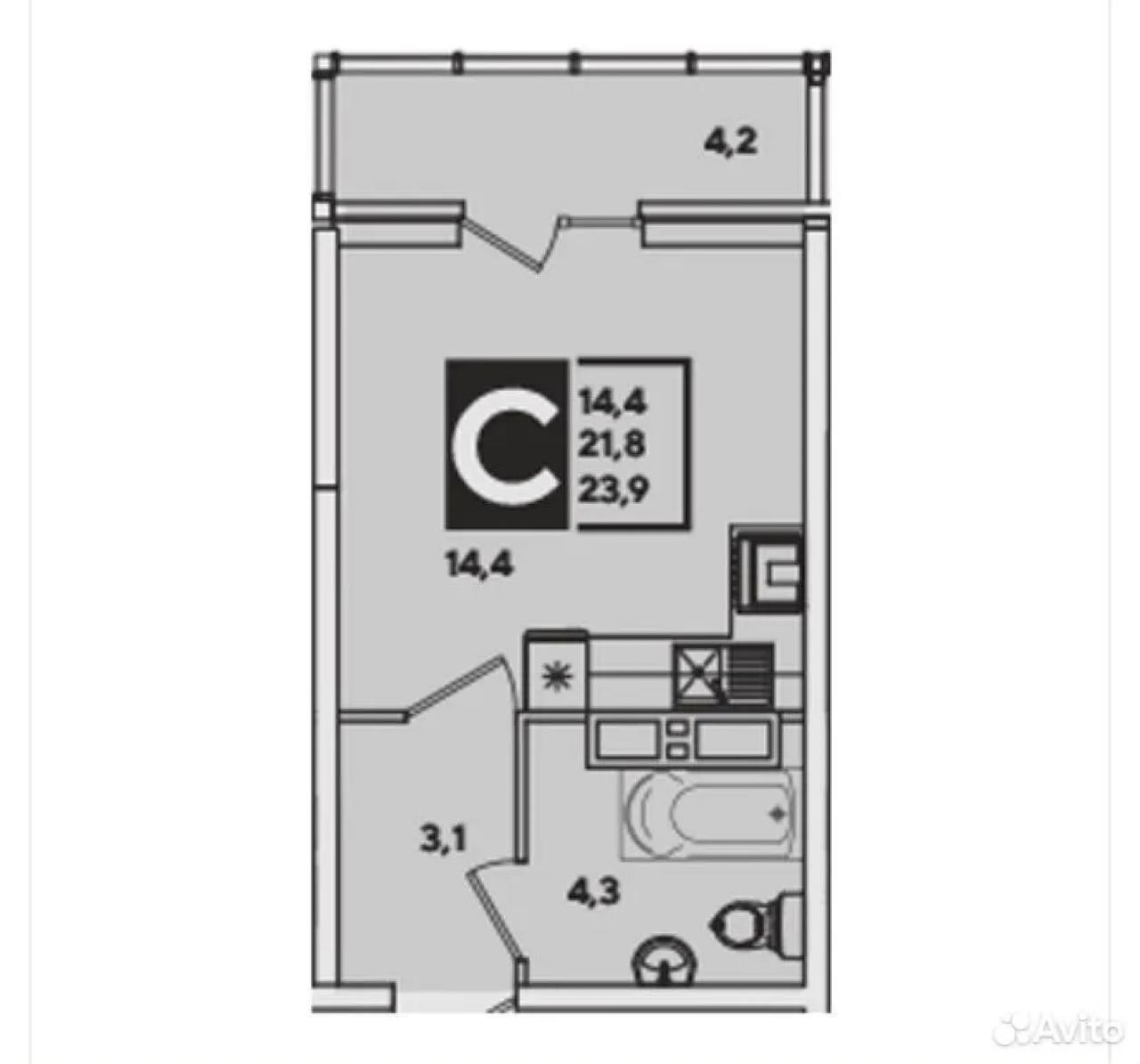 Квартира студия, 24 м2, этаж 14 / 24, на продажу в Краснодаре, улица Героя Пешкова, 14к3
