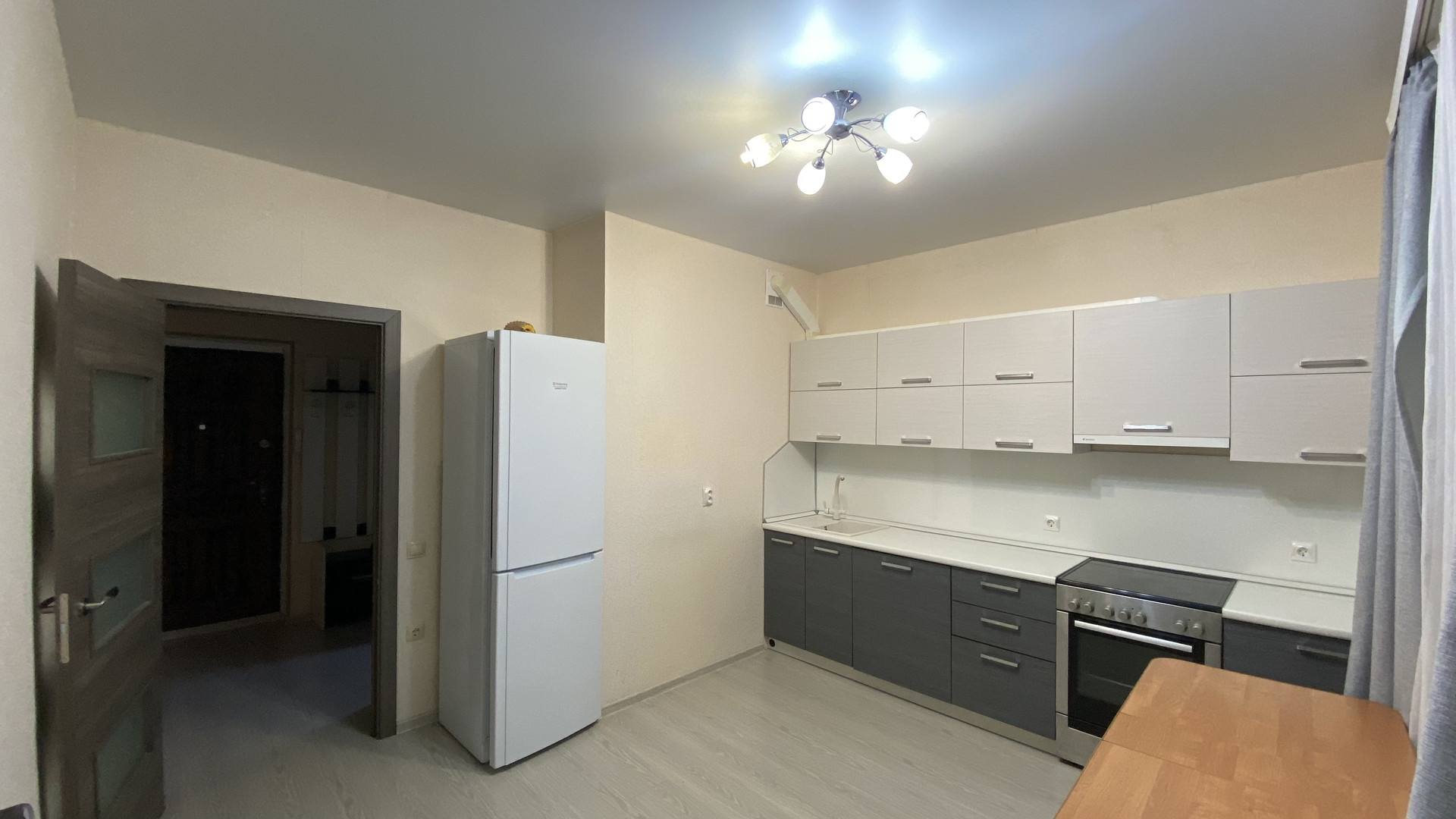 * Новый кухонный гарнитур с доводчиками и встроенные бытовые приборы.