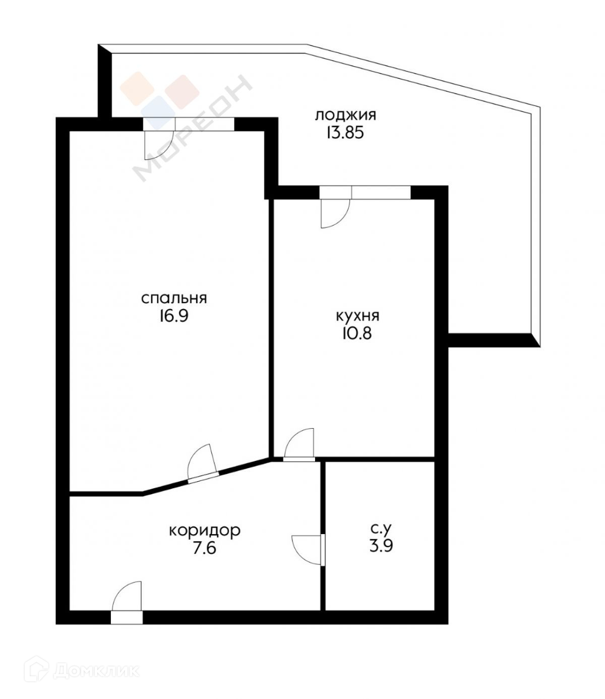 Жилая площадь 16.9 м2