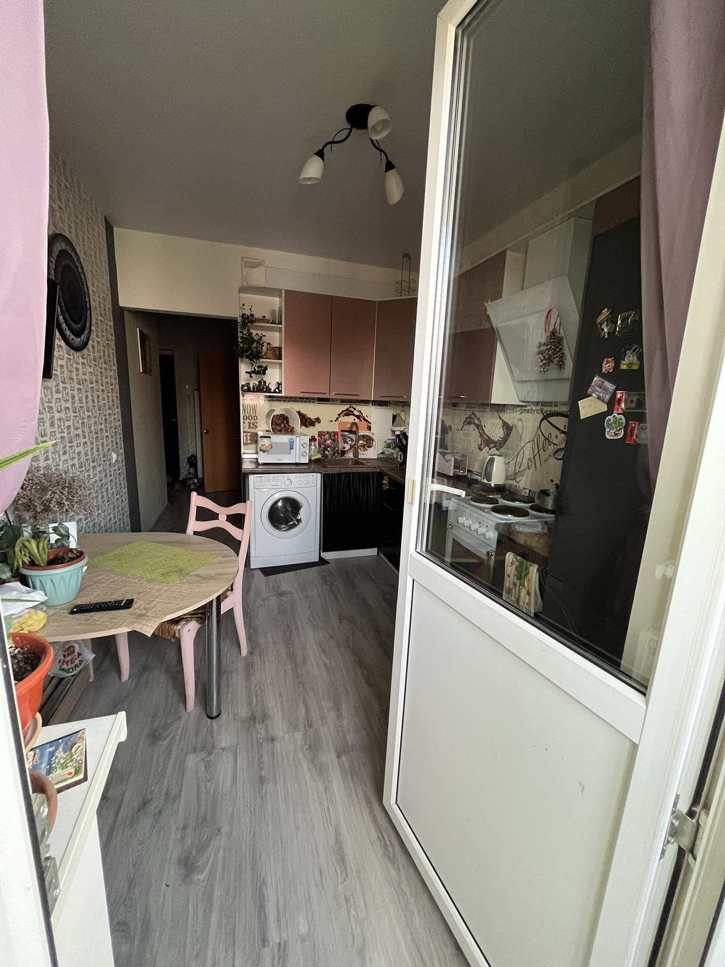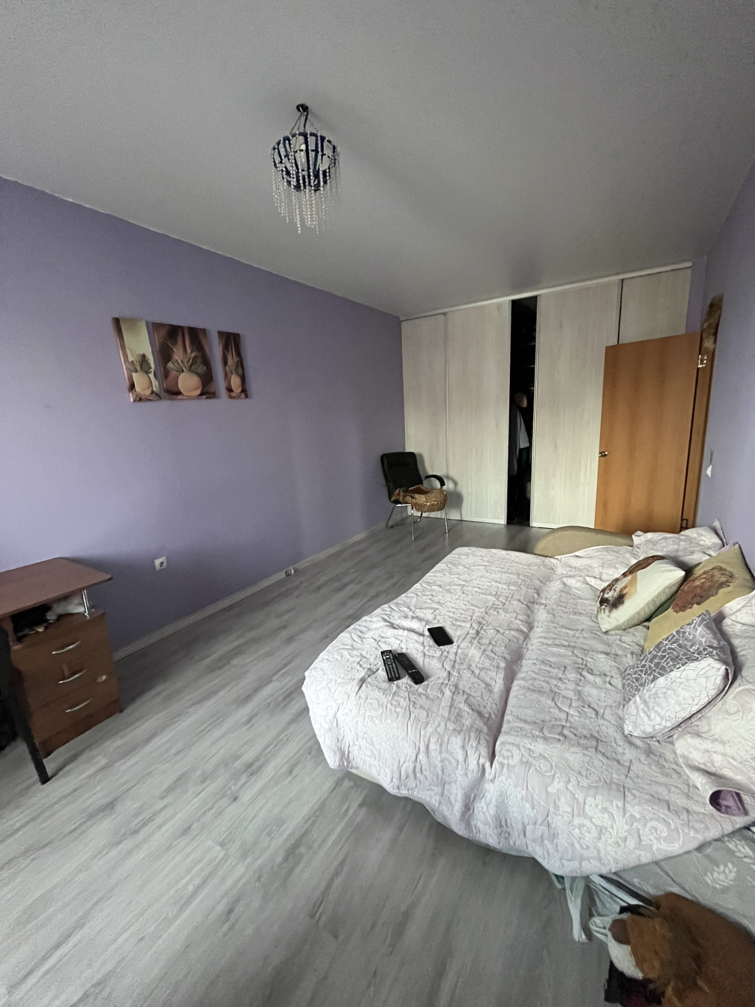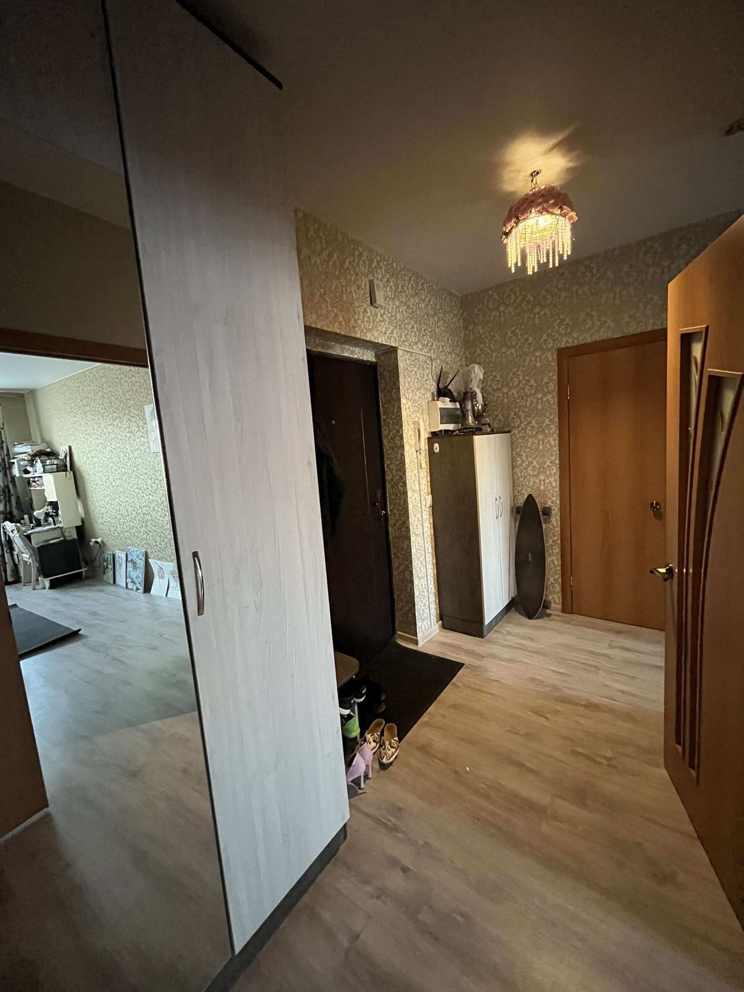66,3 кВ м, 2 балкона , 2 комнаты, есть гардеробная и шкаф большой в прихожей