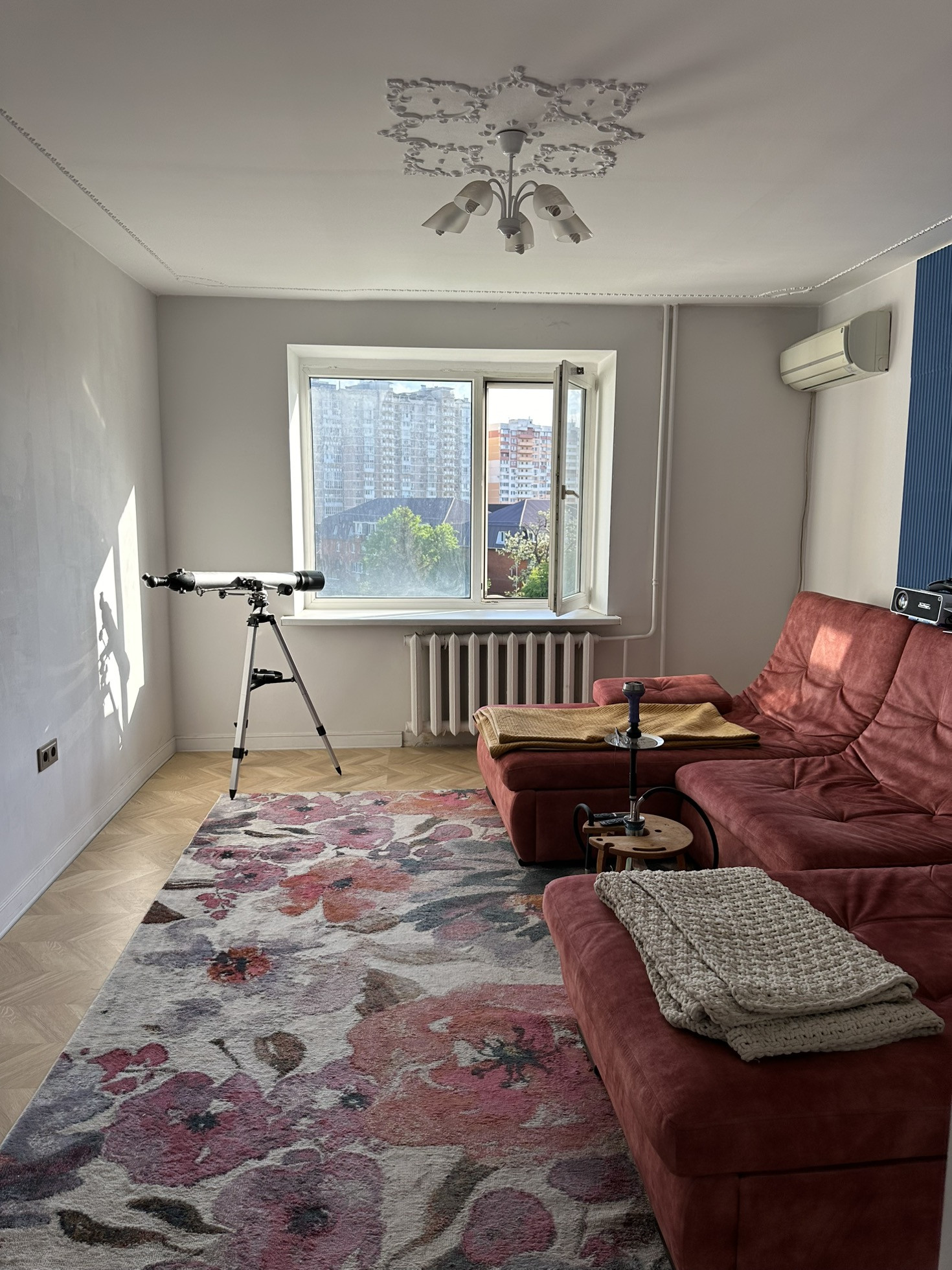 Очень светлая и красивая квартира,солнечная сторона . Выполнен дизайнерский ремонт, стоит дорогая мебель и техника. Вся мебель остается в квартире со всей техникой( стоит новый PlayStation 5, кинопроектор) очень просторная квартира и удобная планировка, центральный район, удобная развязка в любую точку города. До красной 10 минут езды, рядом трамвайная и автобусная остановка, большой магнит 24 часа,школа прям под домом и есть садики.
