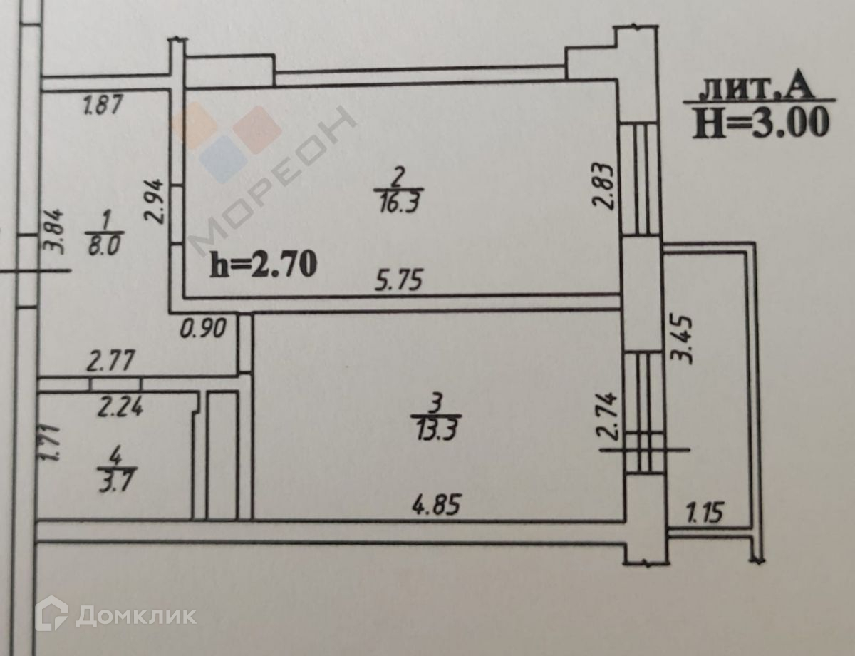 Общая площадь 41.3 м2