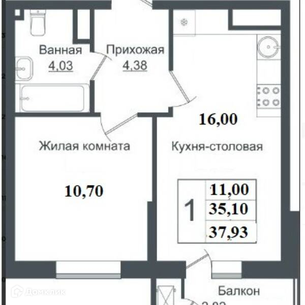 Балкон, лоджия 1 балкон
