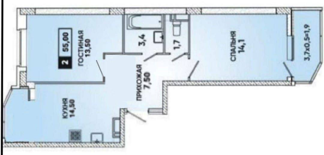 Общая площадь 55 м2