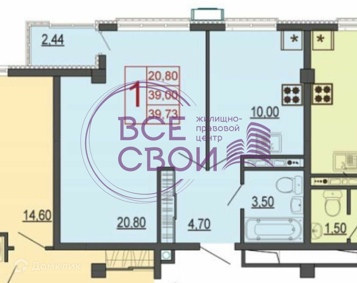 Общая площадь 39 м2