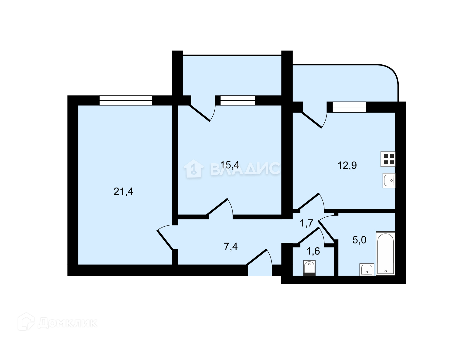 Общая площадь 65.4 м2