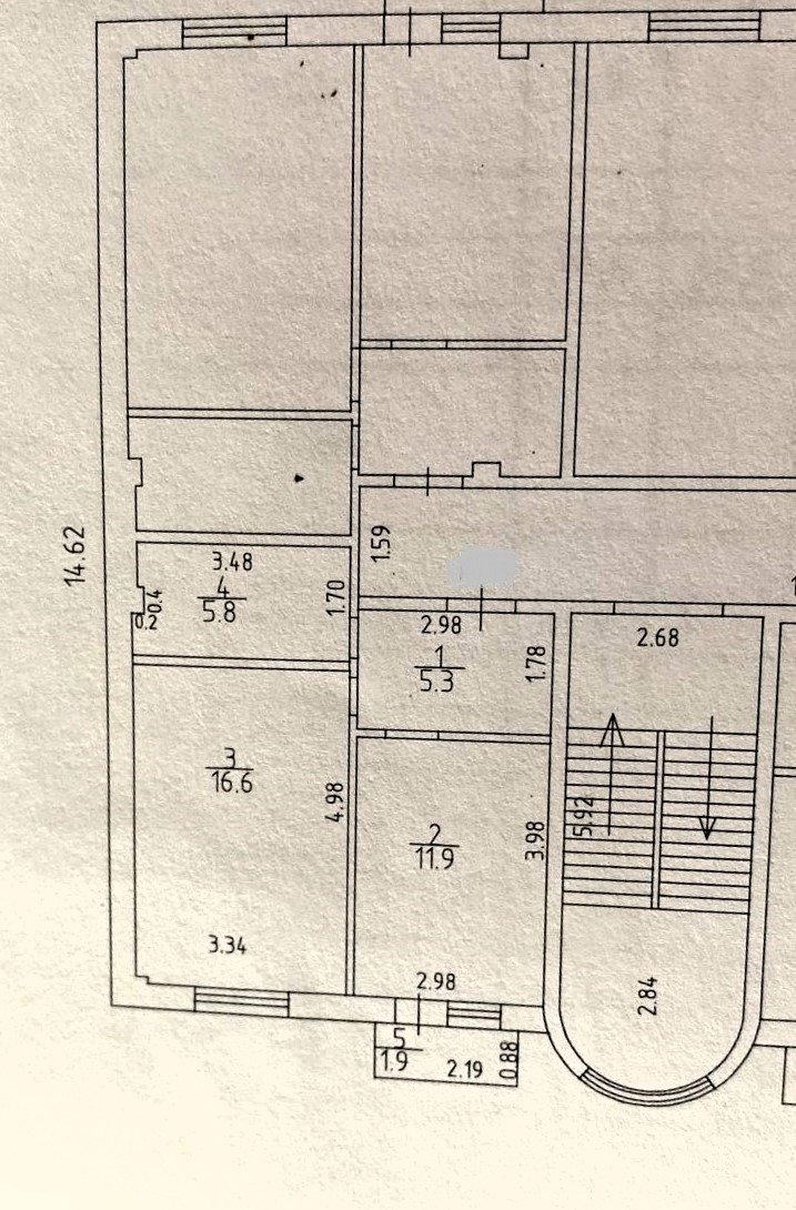 Площадь общая 40 кв.м., окна во двор.