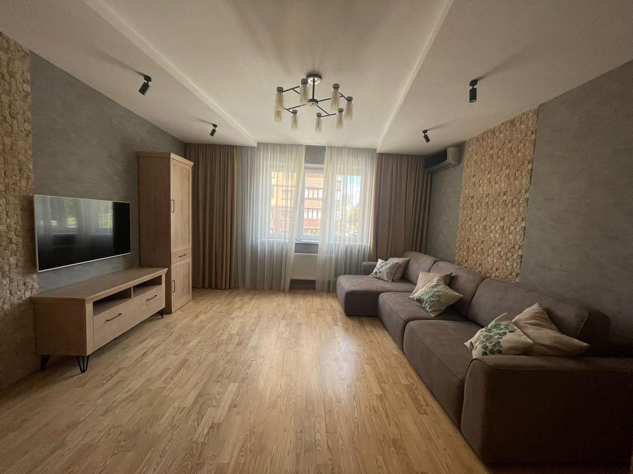 — Просторная гостиная, идеально подходящая для приема гостей или семейных вечеров, с большими окнами, обеспечивающими отличное естественное освещение.