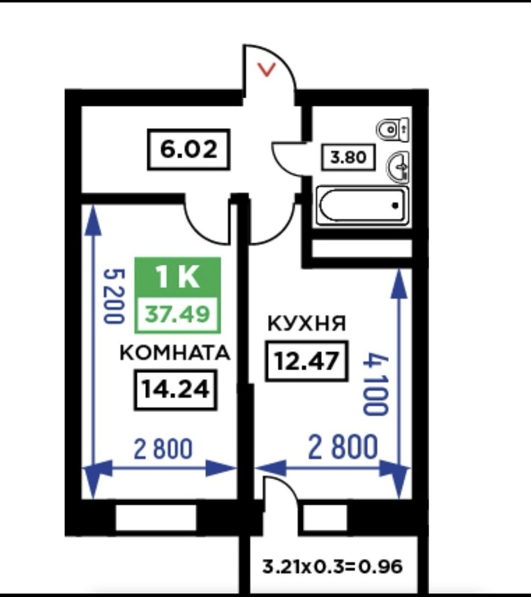 Общая площадь 38 м2