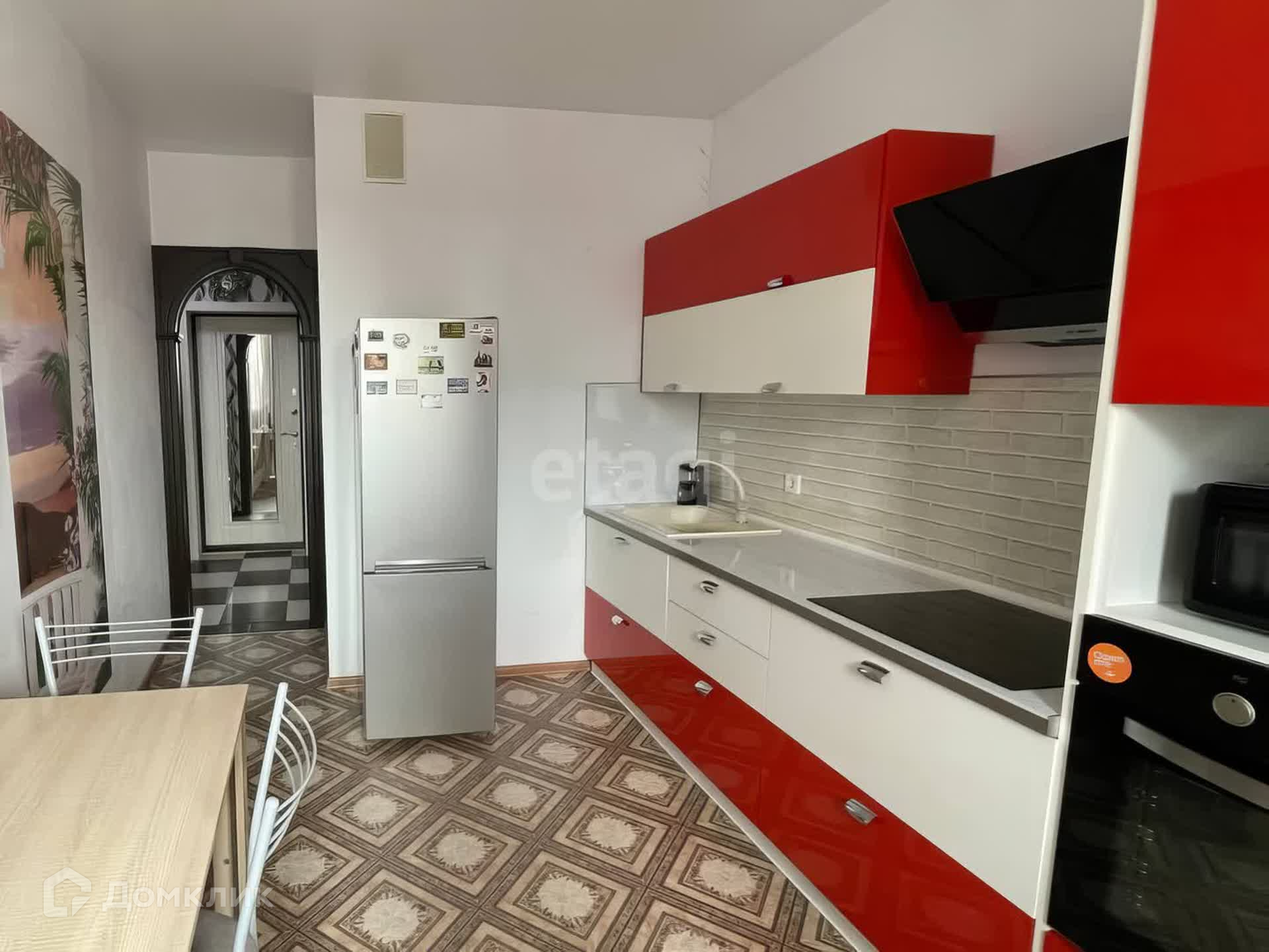 Продается однокомнатная квартира, дом монолит-кирпич, комфорт класса. Качественный ремонт, дорогие обои, на полу ламинат и плитка, натяжные потолки, дорогой кухонный гарнитур, мебель остается. Витражное остекление. Уютный, тихий двор, детская и спортивная площадки, закрытая и охраняемая территория комплекса и видеонаблюдение, консьерж, три лифта, управляющая компания во дворе. Остановки общественного транспорта, в том числе трамвайные в 5 минутах ходьбы, гипермаркет магнит семейный, детский сад № 1, школы, краснодарский институт культуры. Один взрослый собственник, обременений нет, ипотека подходит.