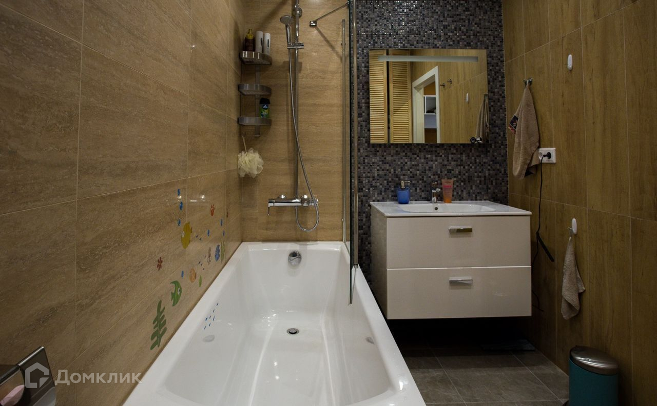 Комнаты раздельные: гостиная 17,5 кв.м, с остекленным в пол балконом, много света и прекрасный вид, уютная спальня 15,6 кв.м с оборудованной гардеробной 3,3 кв.м,  прихожая 7,5 кв.м с вместительным шкафом-купе и теплым полом; санузел 2,2 кв.м совмещенный, оборудован качественной сантехникой, мебелью, стиральной машиной, теплым полом.