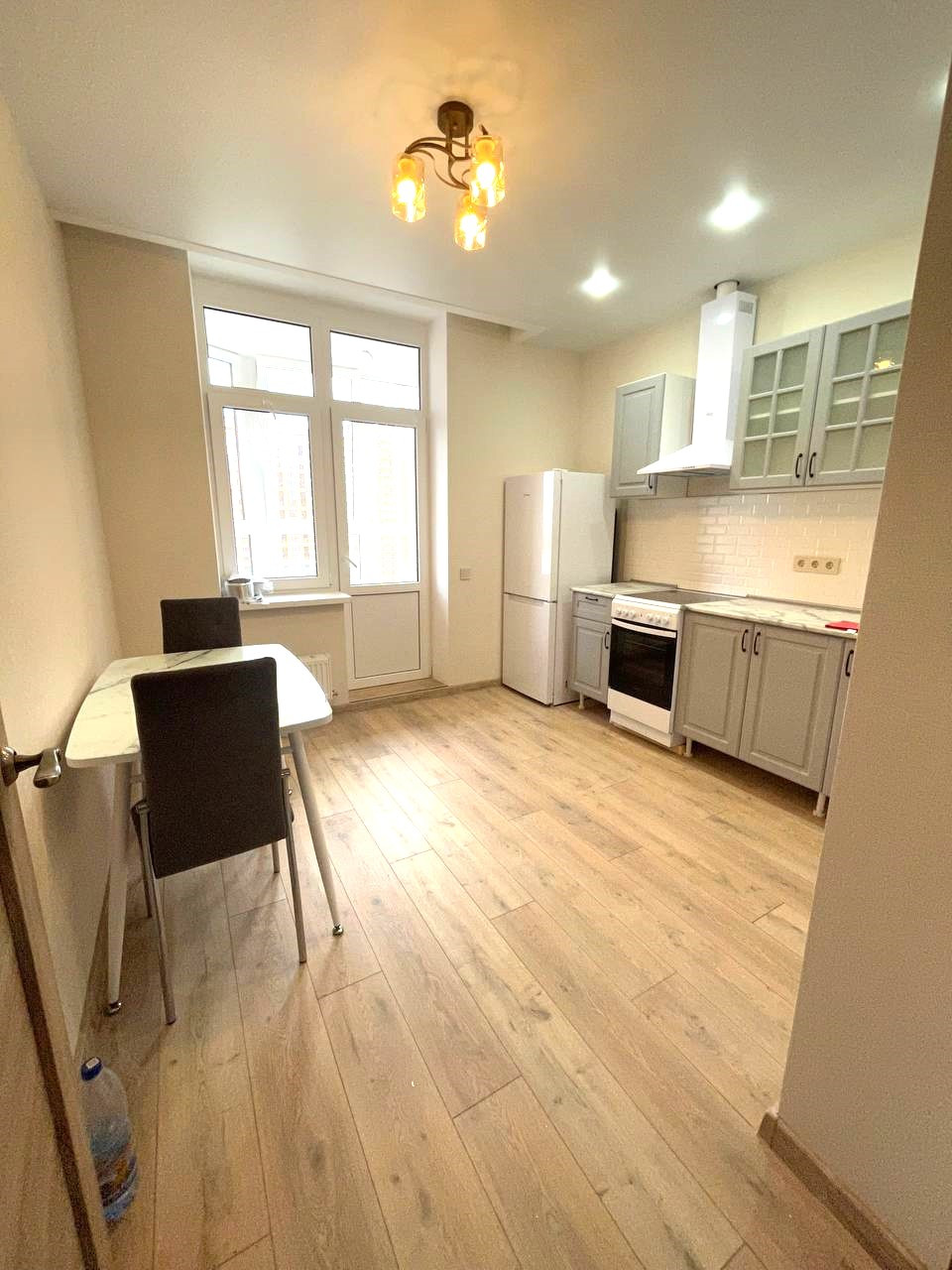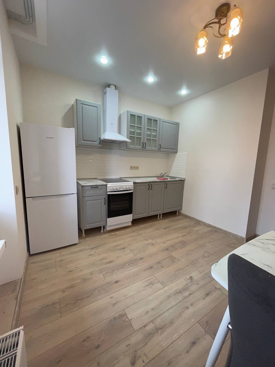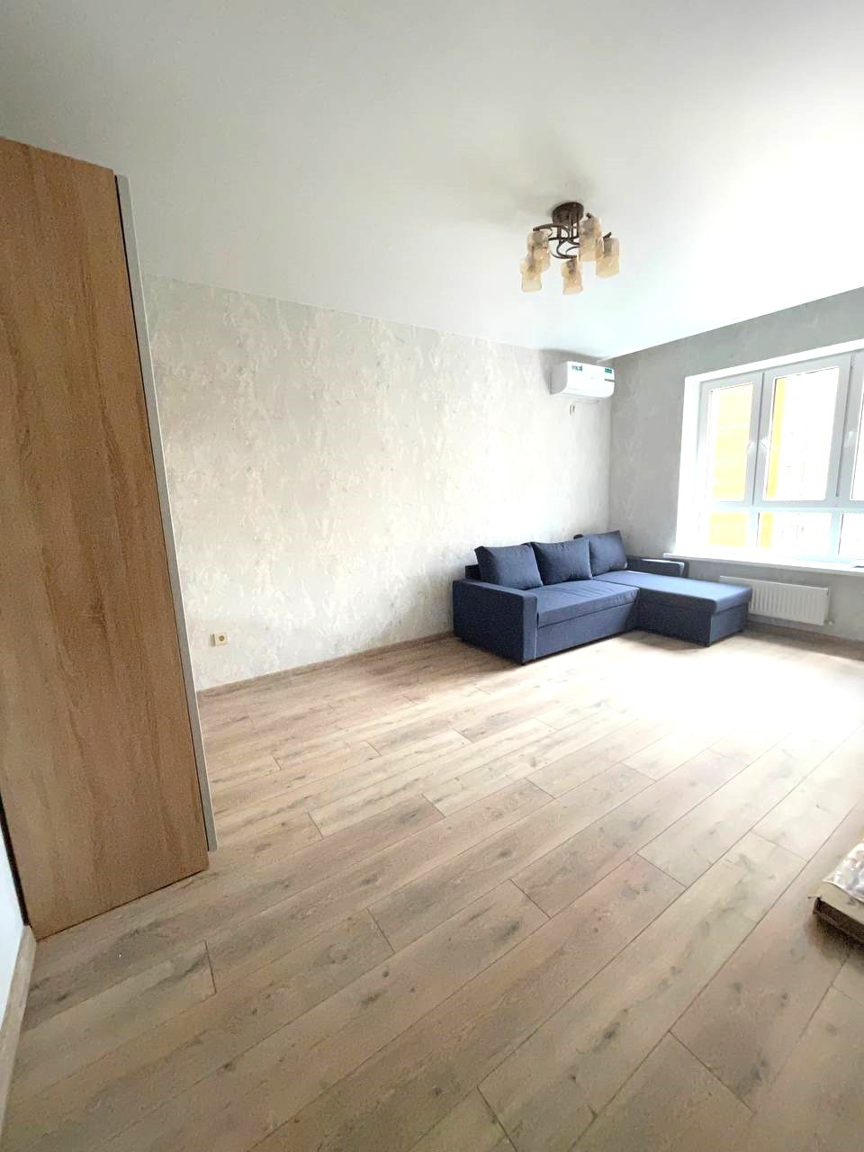 В квартире выполнен новый ремонт в светлых тонах. Большая кухня гостиная и полноценная изолированная комната. С кухни есть выход на лоджию. Санузел совмещен, установлена качественная сантехника.