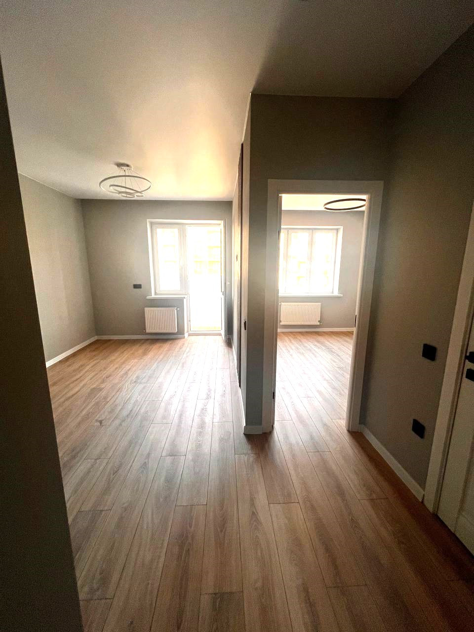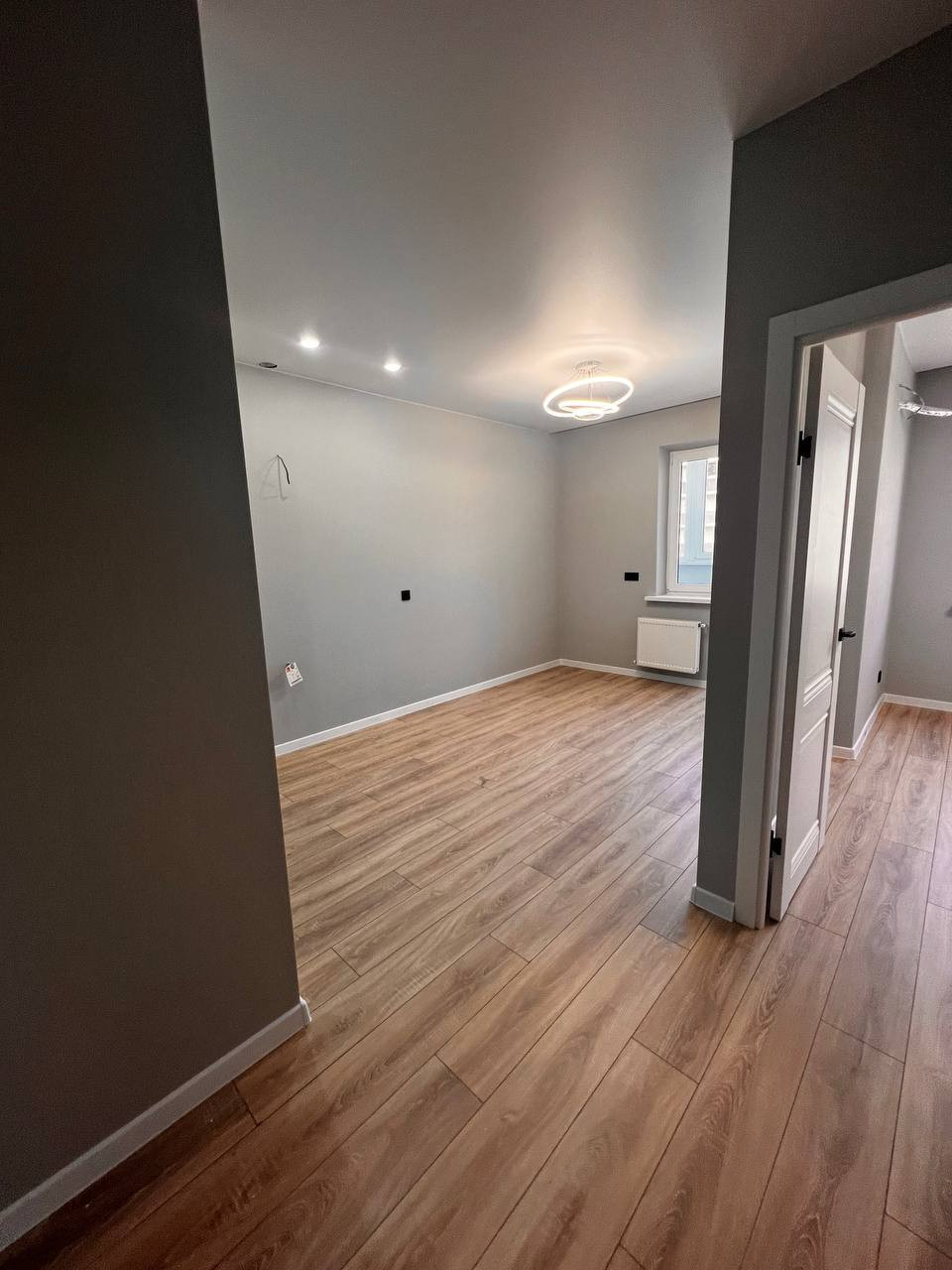 В квартире выполнен новый ремонт в светлых тонах. Большая кухня гостиная и полноценная изолированная комната.  С комнаты есть выход на застекленную лоджию. Санузел совмещен, установлена качественная новая сантехника.