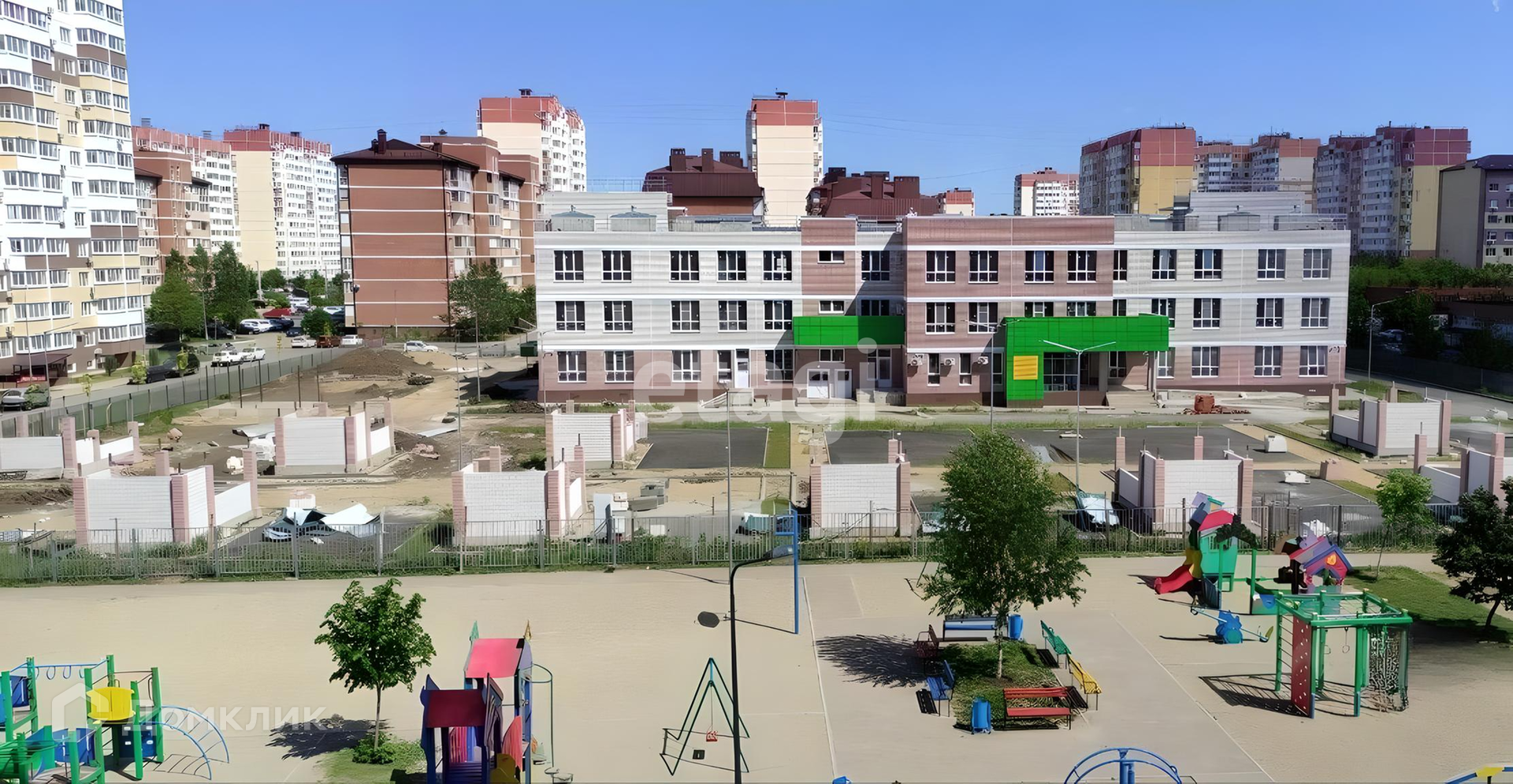 Рядом с домом вместительная парковка, ухоженный зеленый двор и новый детский сад, школа, парк Изумрудный в 5 минутах ходьбы. Район с развитой инфраструктурой, магазины, поликлиники и остановки общественного транспорта находятся в шаговой доступности.