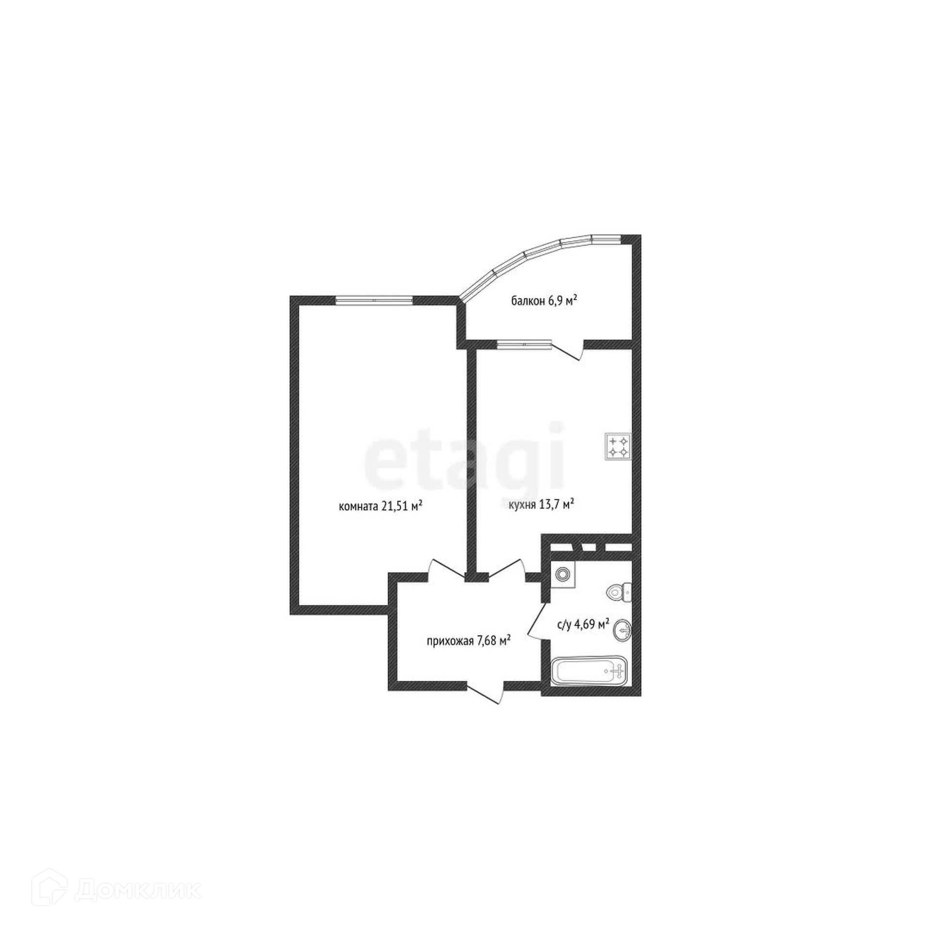 В продаже 1к квартира 47 м2 общая площадь.