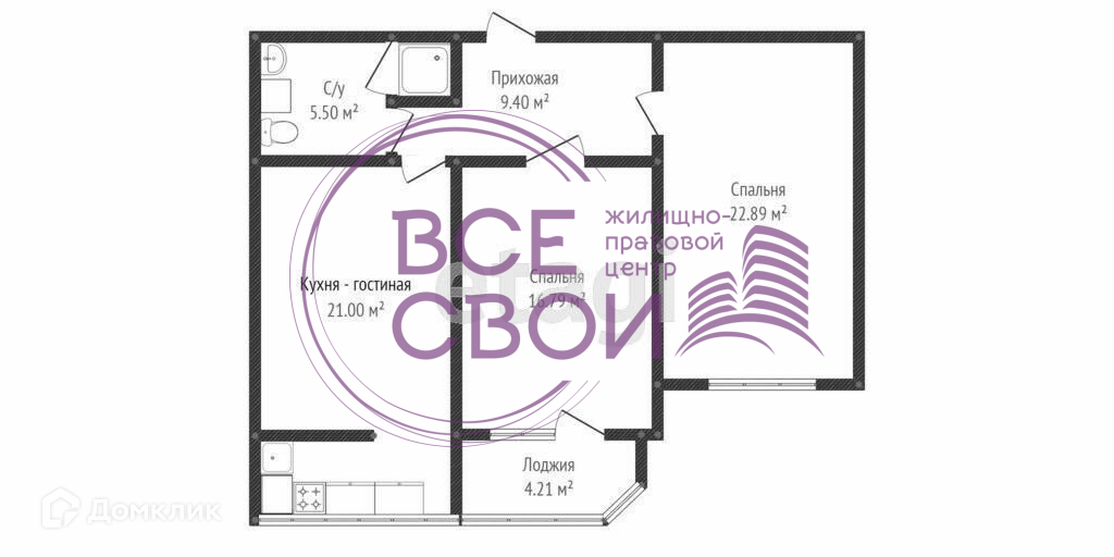 Площадь кухни 21.6 м2