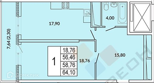 Общая площадь 56.7 м2