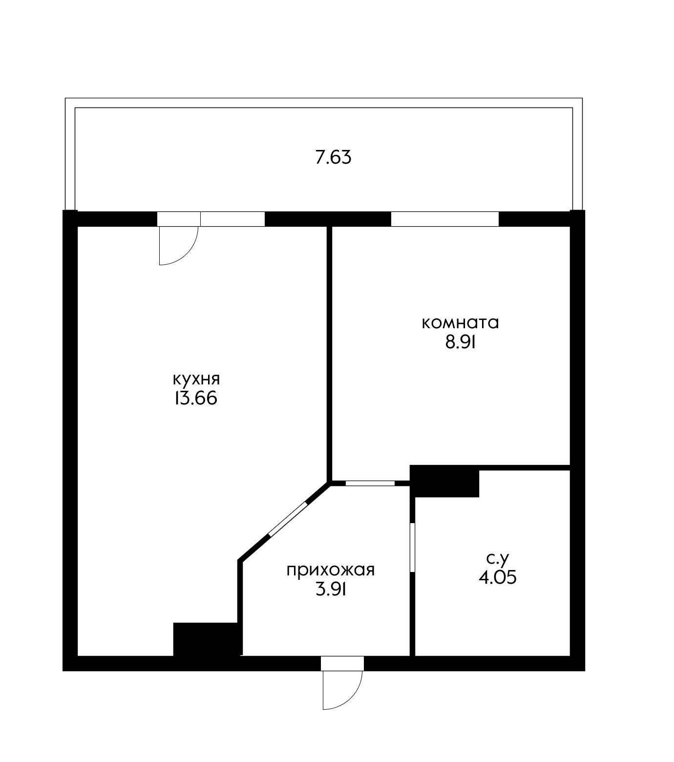 Балкон, лоджия 1 балкон