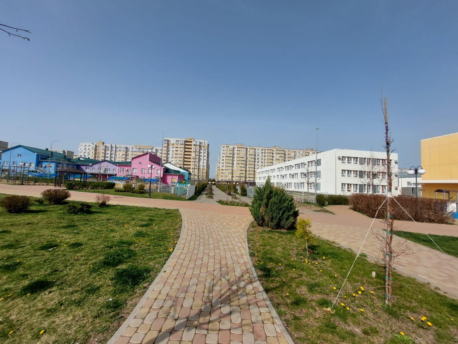 Сам комплекс уникален, территория просто сказка! На территории комплекса своя новая школа, новый детский садик, прогулочные аллеи, детские площадки их так много и они все разные. С такой территорией не нужно выезжать в парк, тут все есть. Вашим деткам будет очень интересно гулять, так как все детские площадки не повторяются.  Через дорогу гипермаркет "Лента", в десяти минутах находятся большой медицинский кластер, Ботанический сад, и Кубанский Государственный Аграрный Университет.