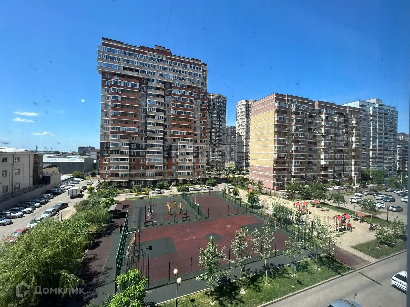 Квартира окнами во двор, на детскую и спортивную площадки. Двор закрытый, въезд только для собственников, с красивым озеленением и зонами для отдыха.