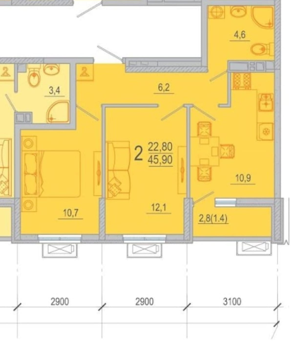 Общая площадь 46 м2
