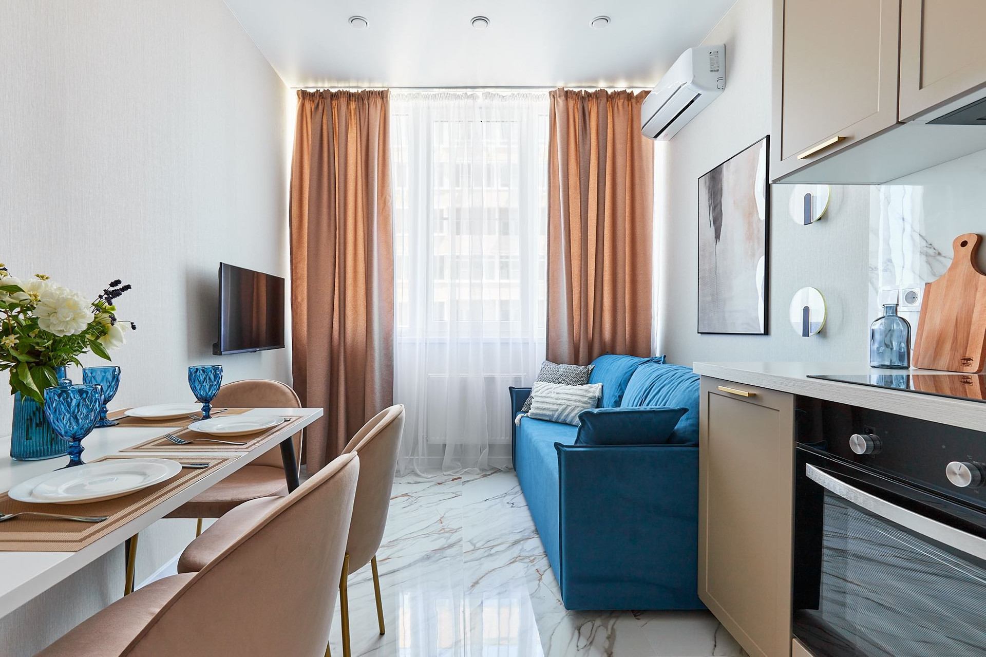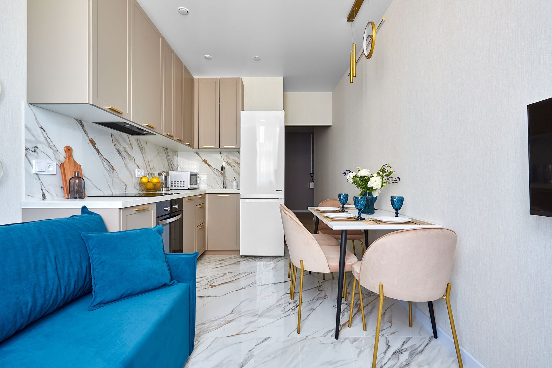 кухня гостиная с диваном