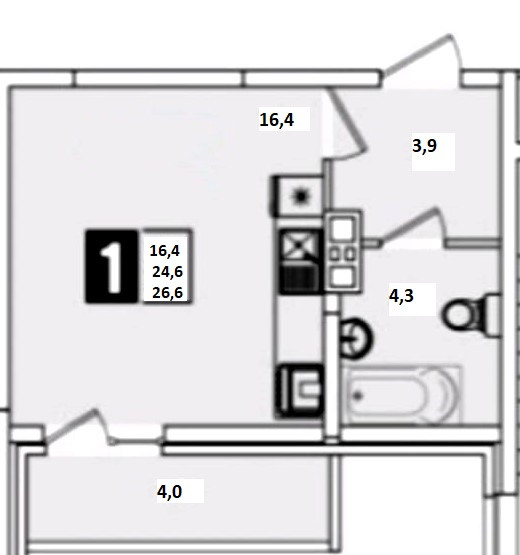 Общая площадь 26.6 м2