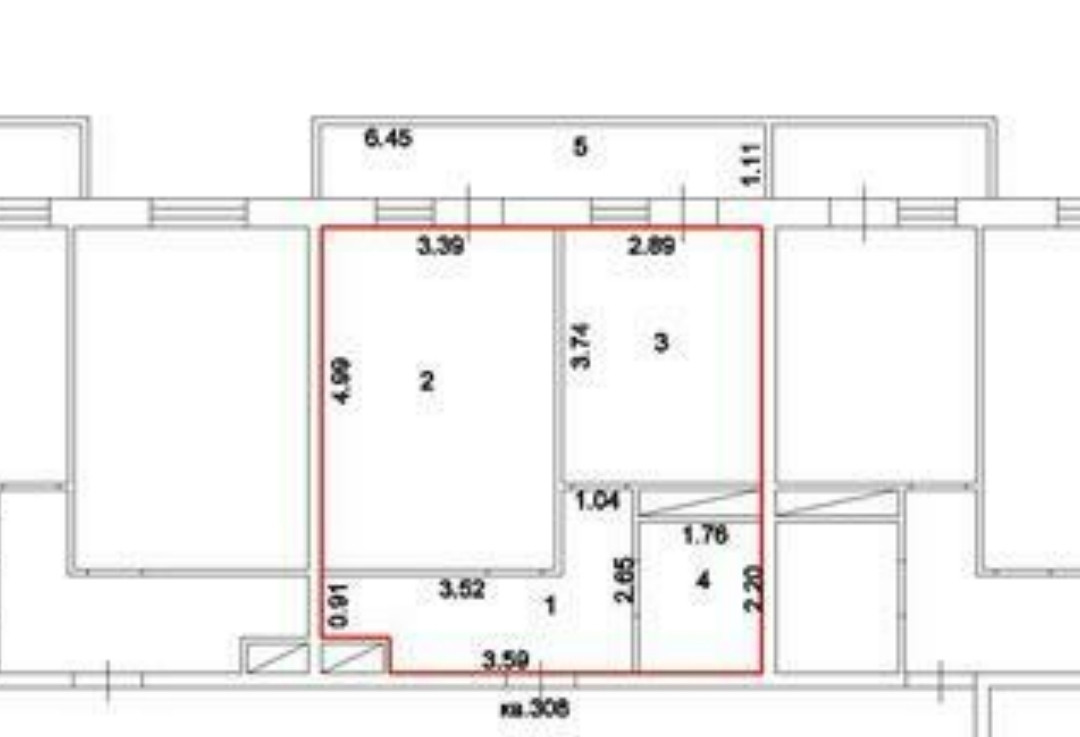 Общая площадь 39 м2