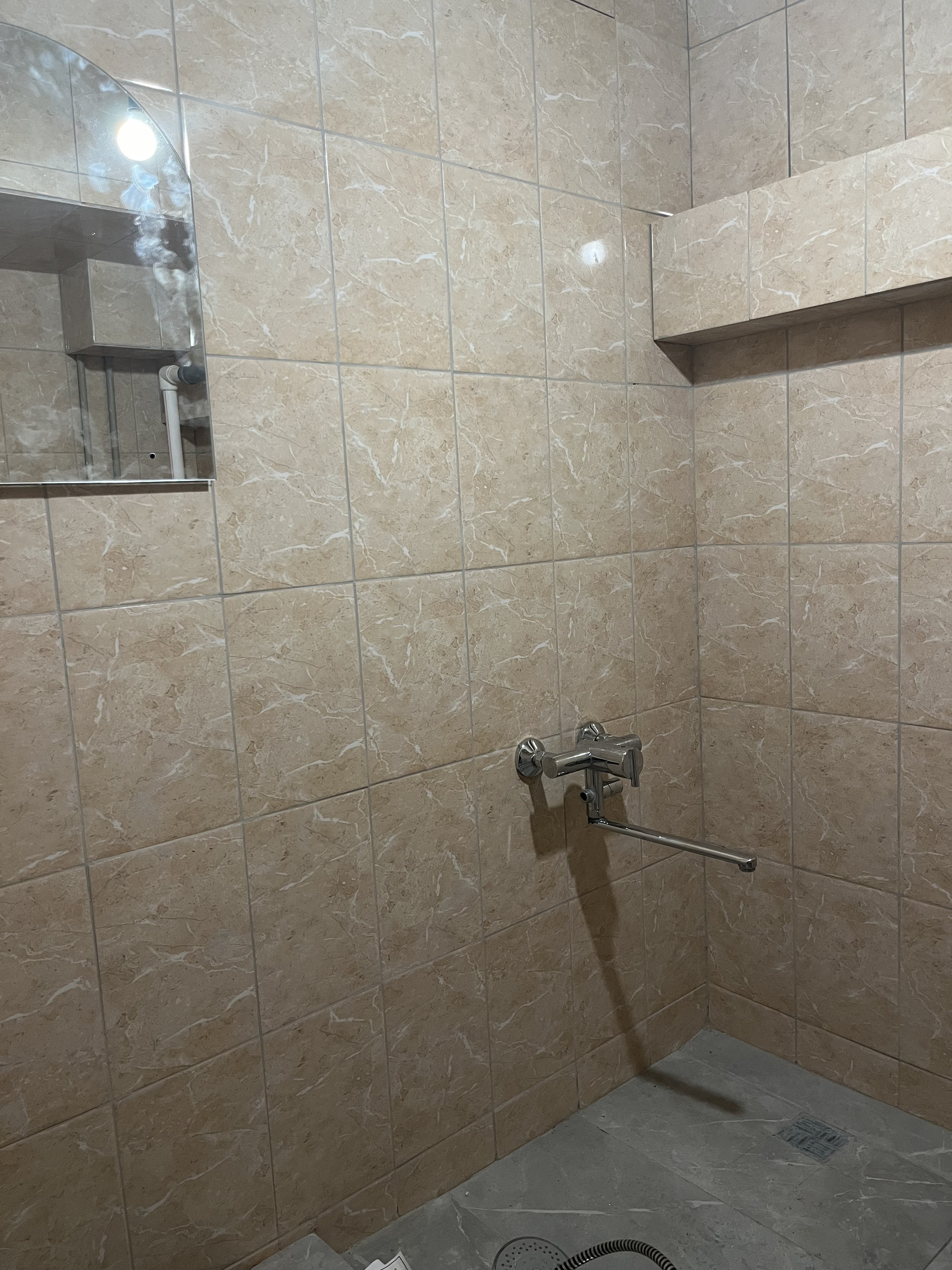 Санузел в плитке, сделаны все выходы под сантехнику. Все коммуникации подключены. За дополнительную плату могу сделать окно.