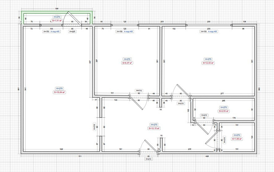 Высота потолков 2.7 м