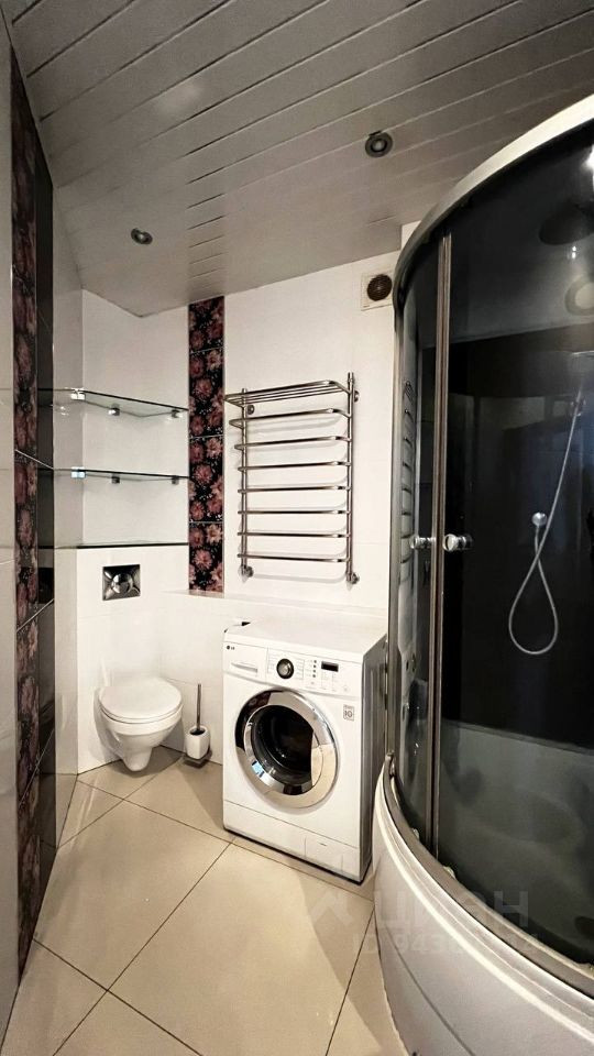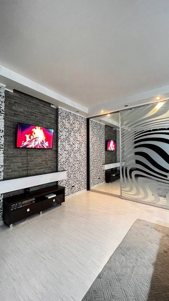 Комната функционально разделена, в квартире глубокий встроенный шкаф длиною почти 5 метров. Новый кухонный гарнитур, холодильник, диван, кровать, стиральная машинка. Квартира грамотно распланирована.