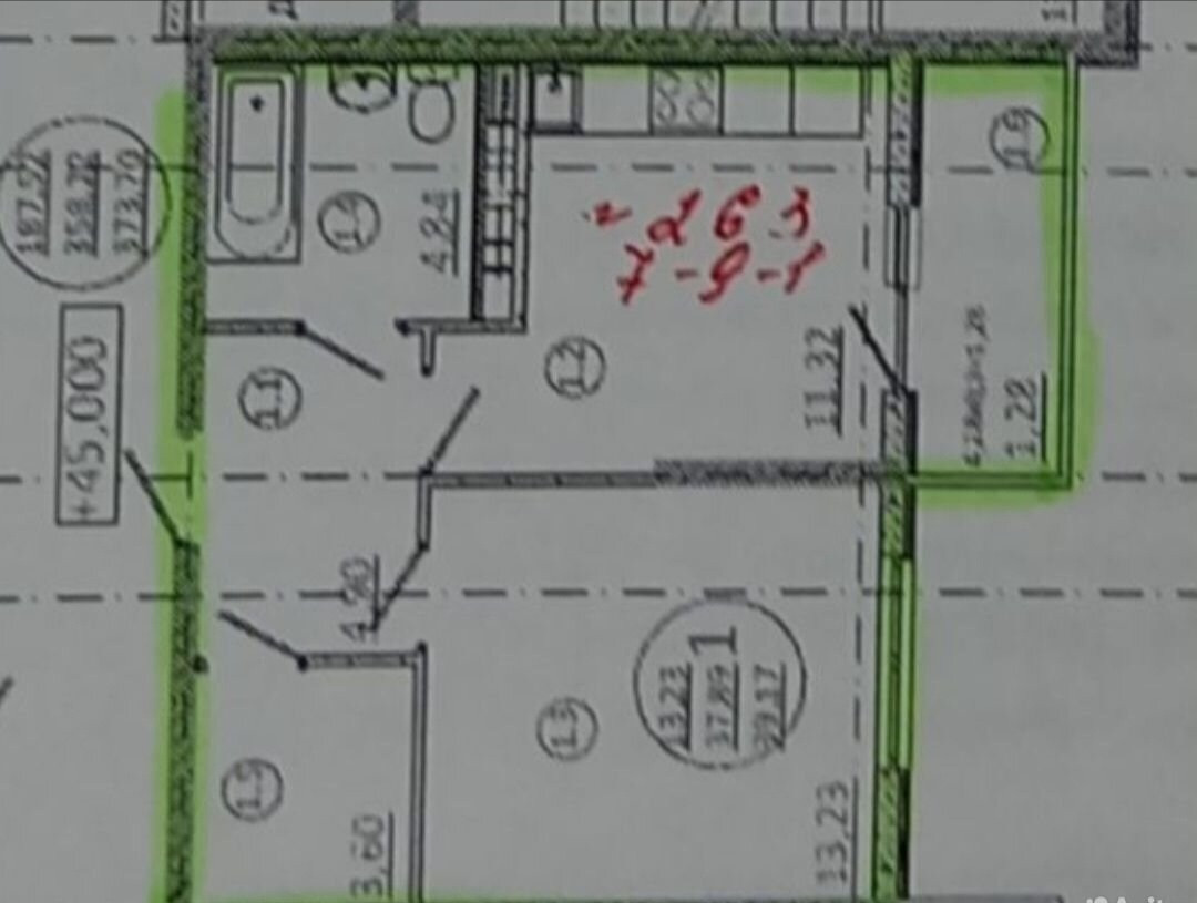Общая площадь 39.5 м2
