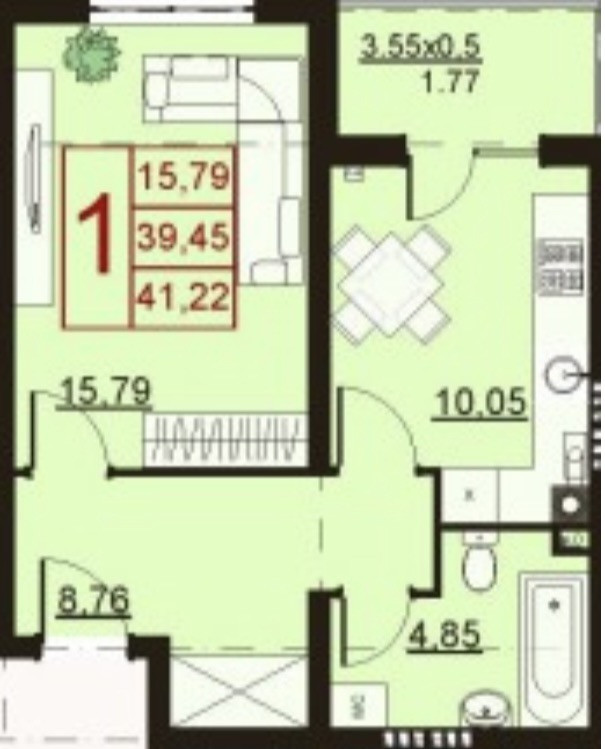 Общая площадь 42 м2