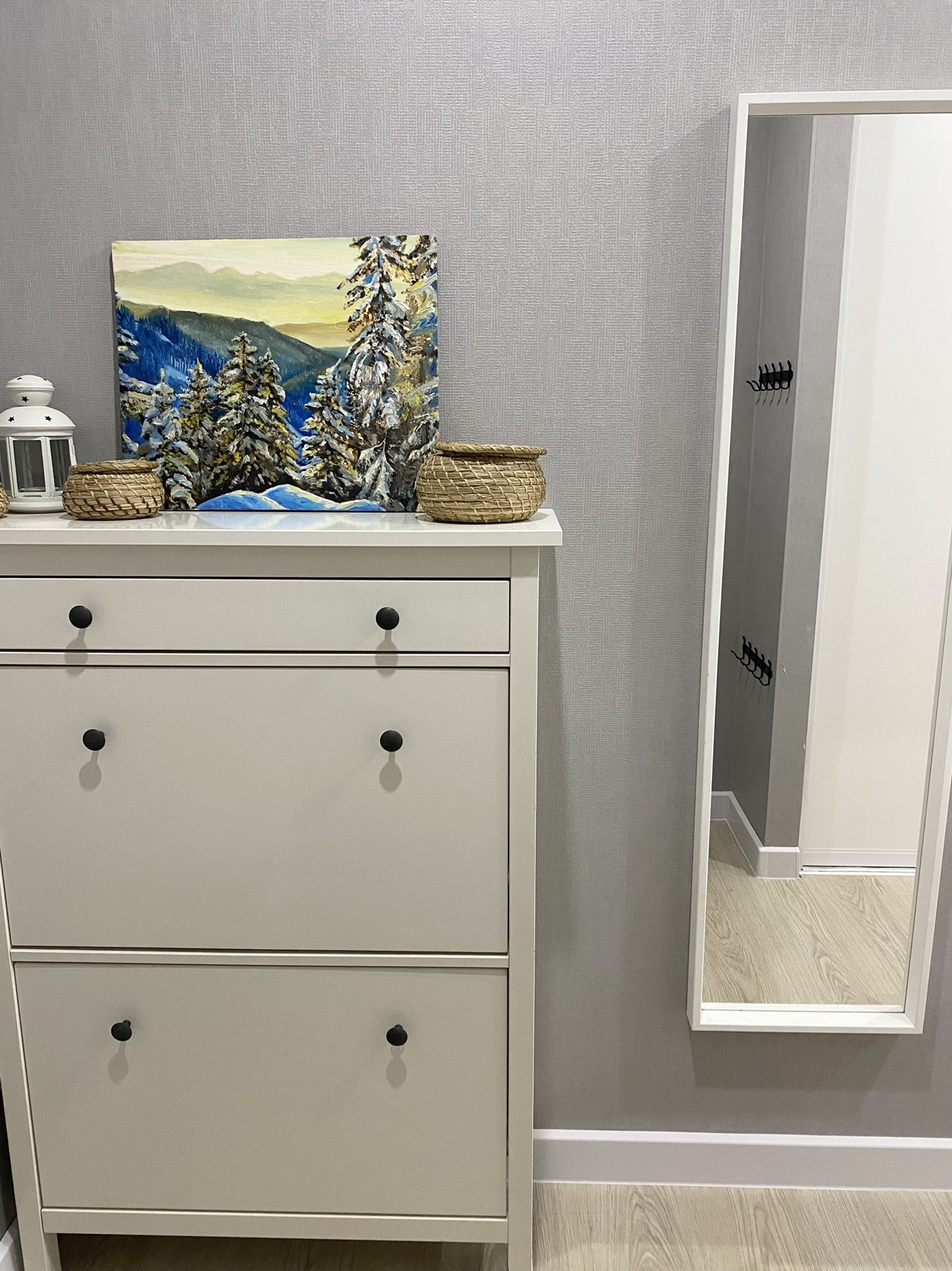 В коридоре большая ниша-гардеробная с системой хранения. Не требуется громоздких шкафов для хранения вещей.
