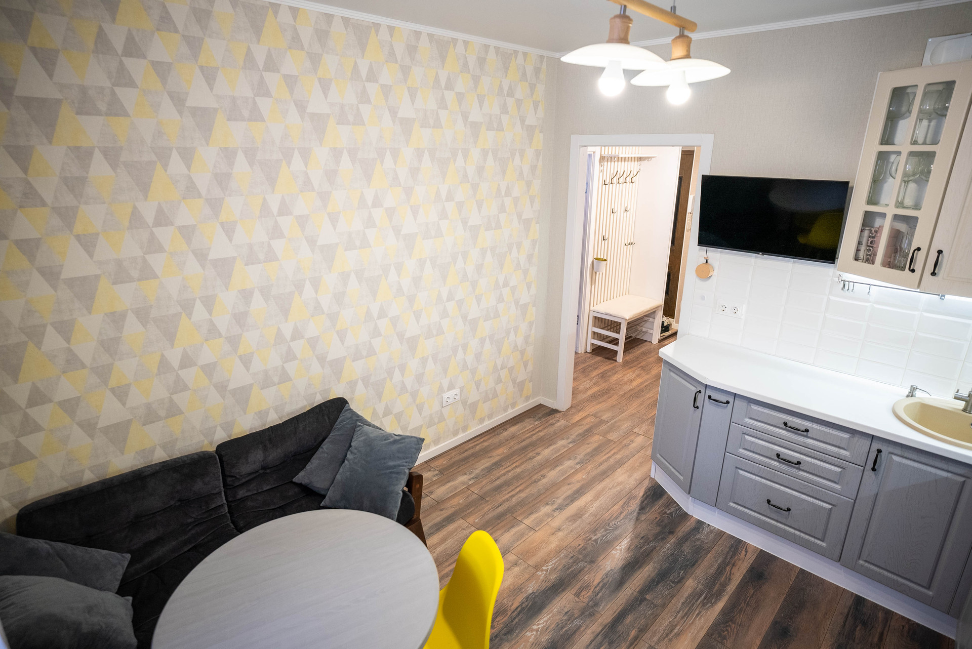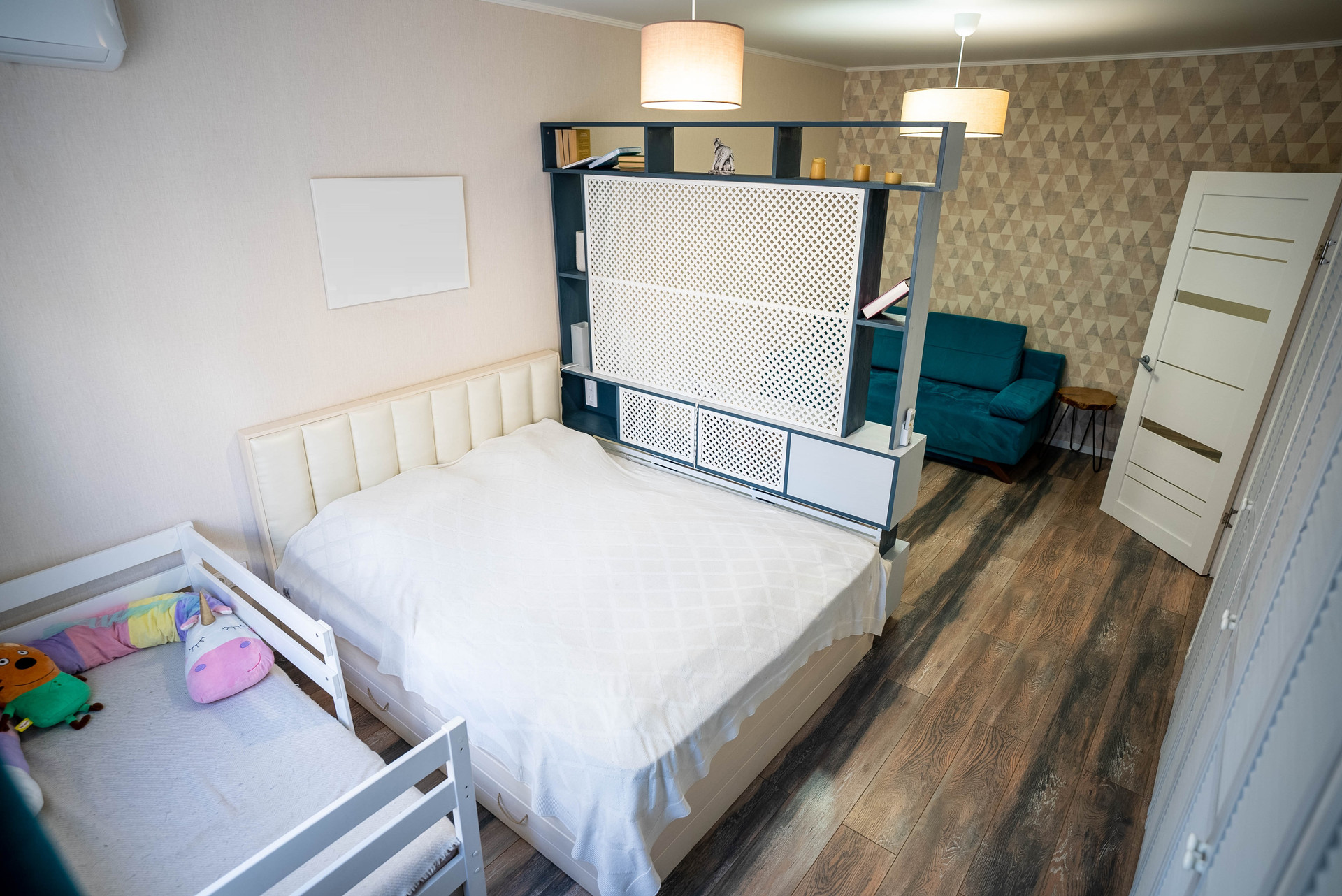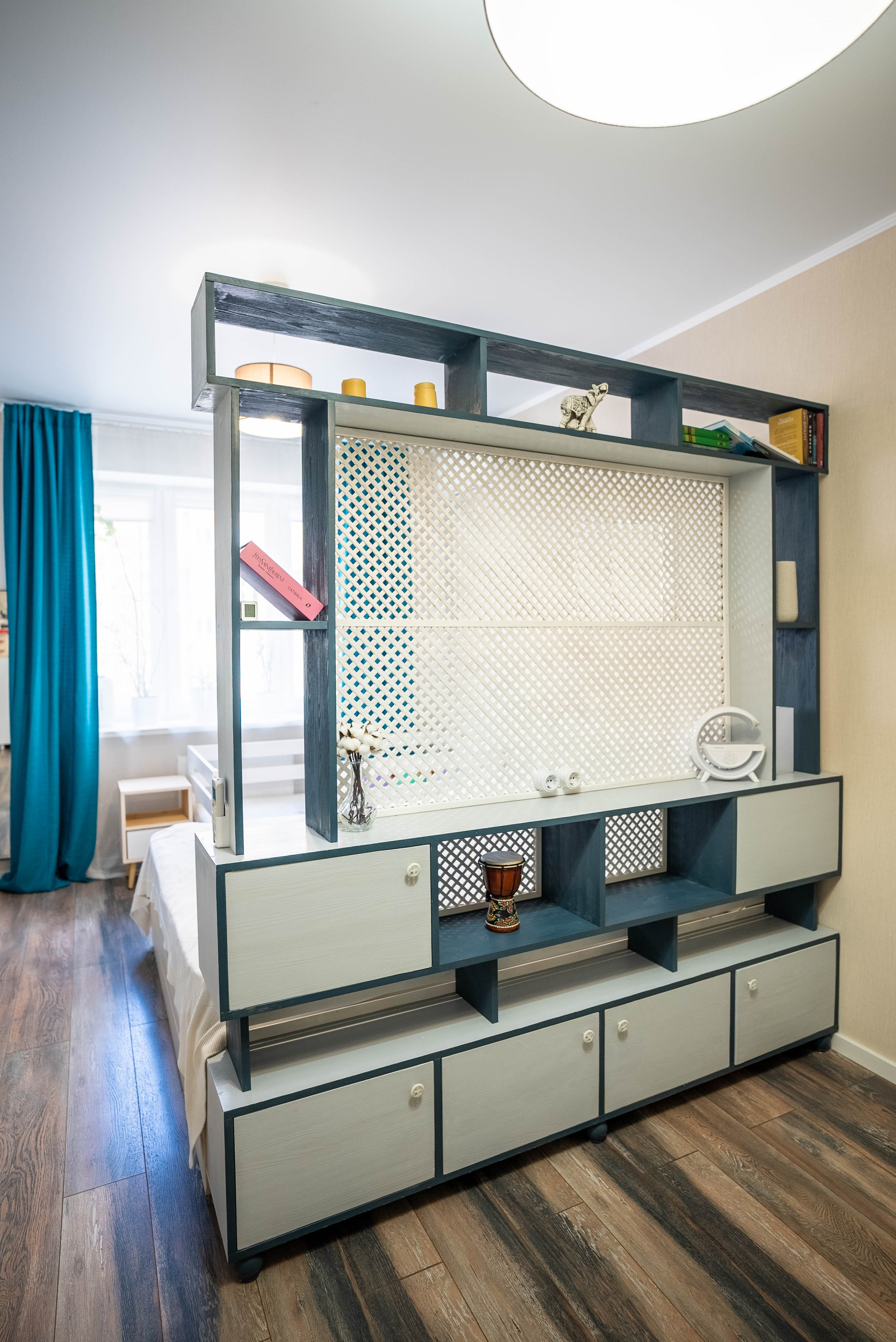 •    Площадь жилой комнаты 20,7м2 позволила организовать зонирование на спальное место и пространство для отдыха.