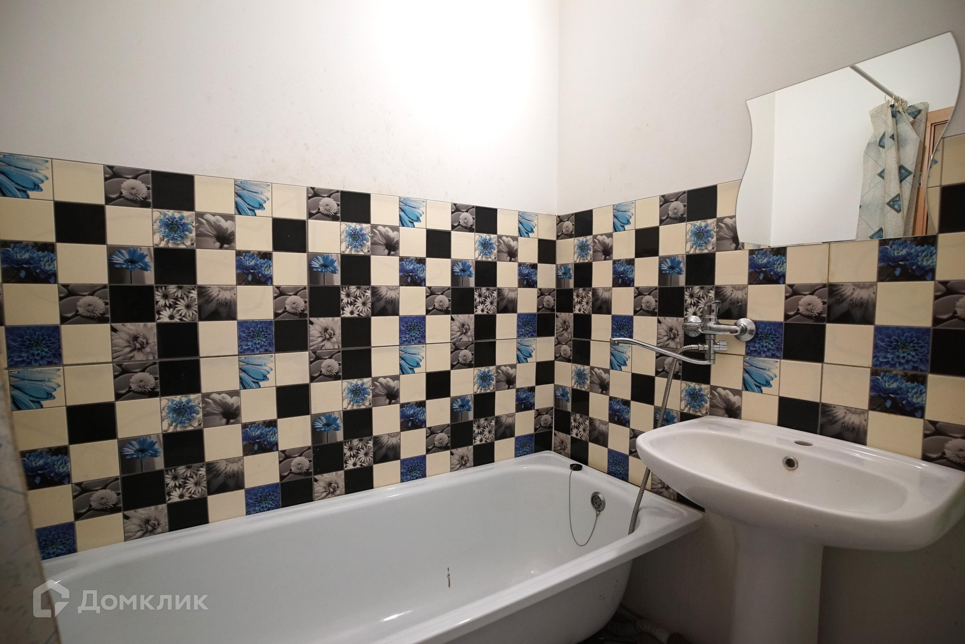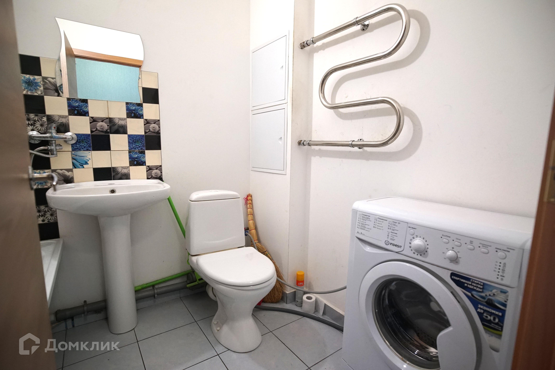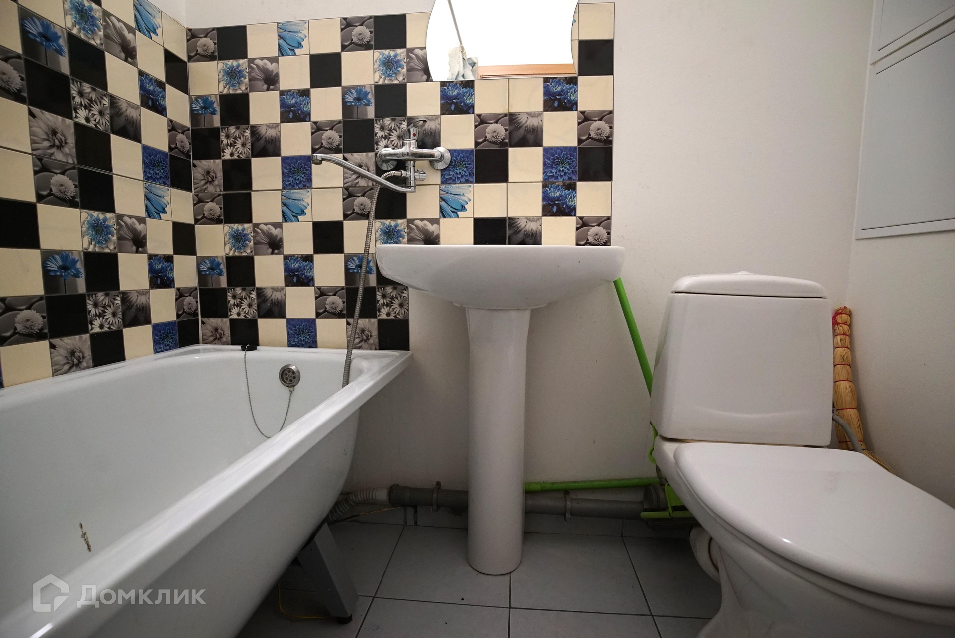 Ванная комната выложена плиткой.
