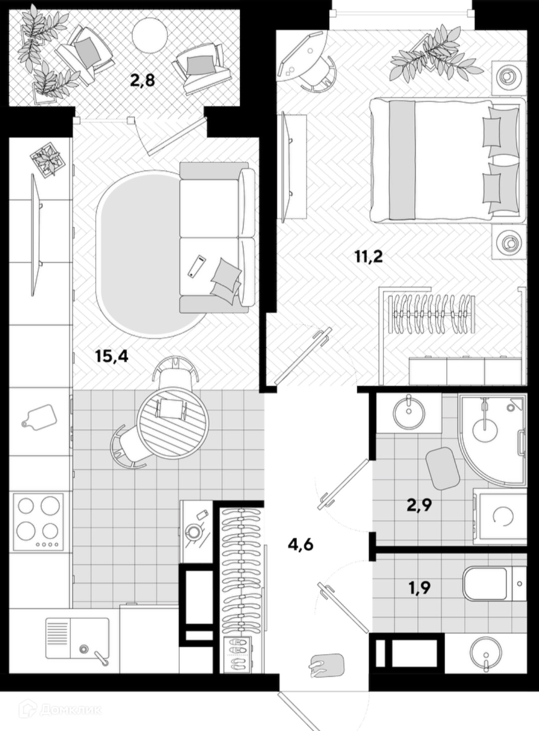 Общая площадь 40 м2