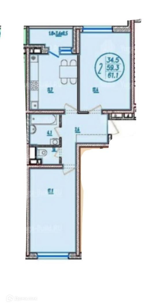 Общая площадь 61.1 м2