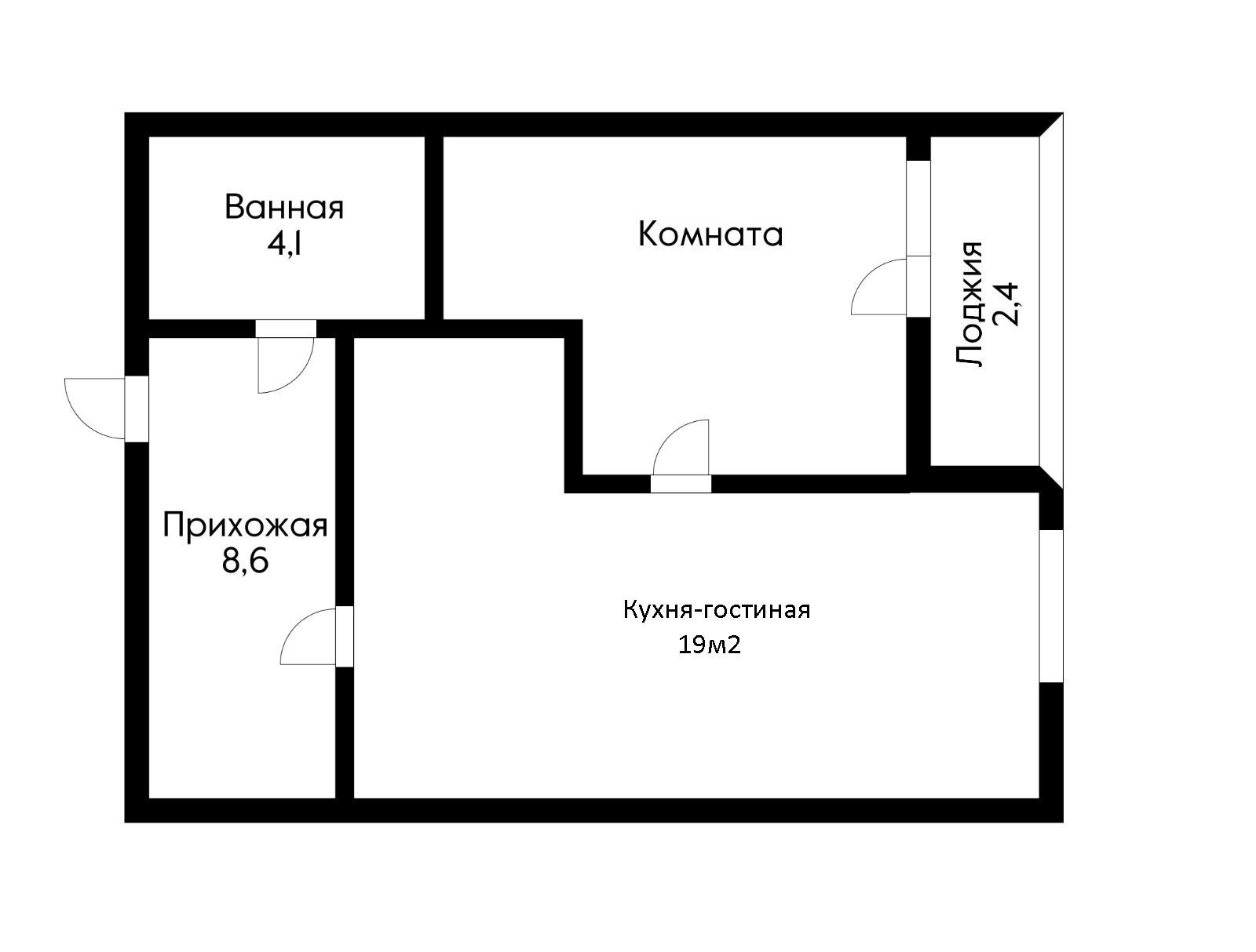 Общая площадь 44 м2