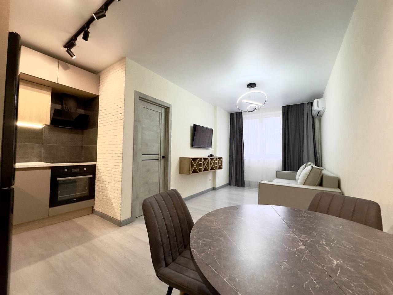 В продаже 1 комнатная квартира с новым дизайнерским ремонтом и мебелью, в развитом районе Краснодара.