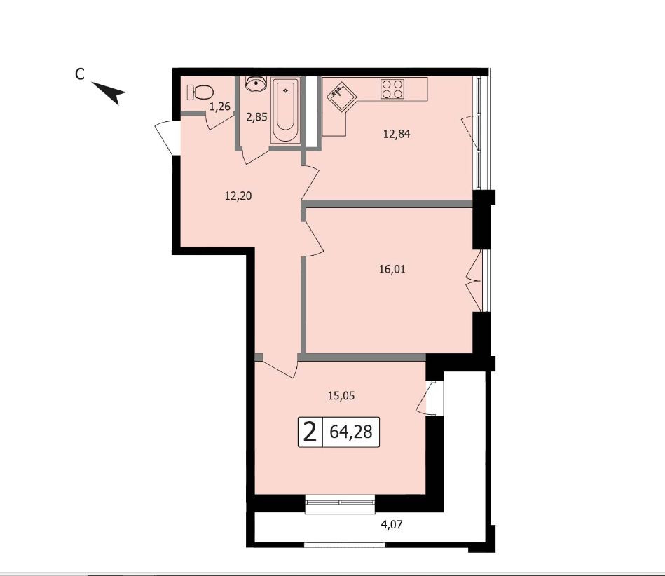 Общая площадь 64.28 м2