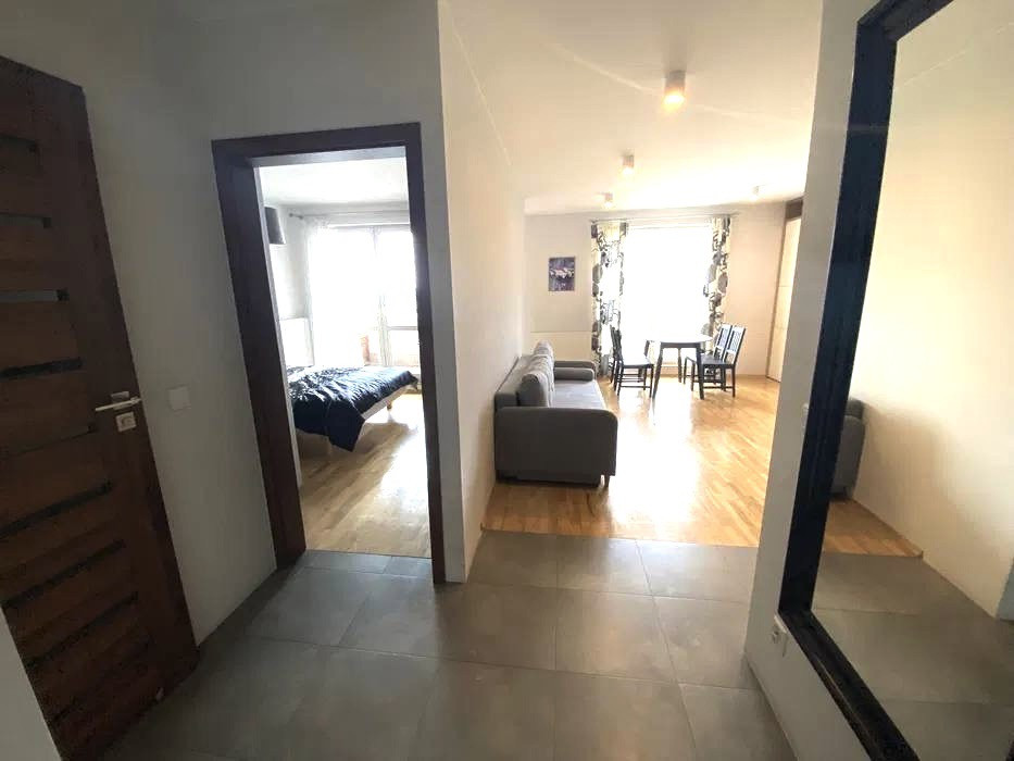 В квартире есть две комнаты: спальня и кухня-гостиная. Гостиная оборудована удобным диваном и телевизором, что позволяет наслаждаться комфортным отдыхом после долгого дня. Кухня функциональная, оснащена всей необходимой бытовой техникой. Ванная комната и туалет совмещенные.