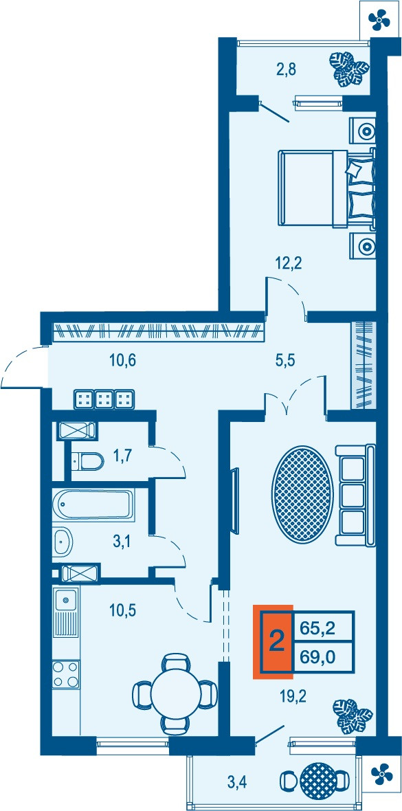 •    Есть возможность объединения комнаты и кухни