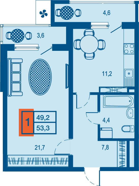 •    Есть возможность объединения комнаты и кухни