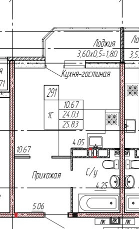 Жилая площадь 10.67 м2