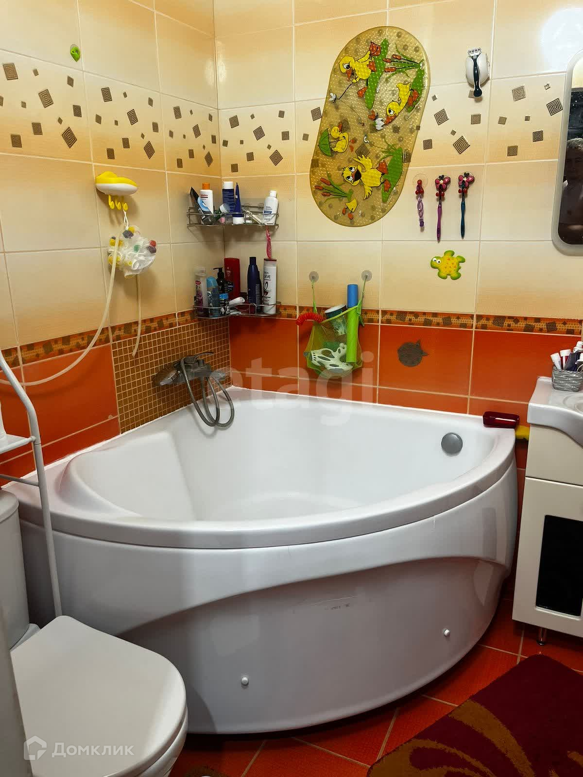 Санузел совместный, кафель, большая ванная, бойлер - если вдруг отключат горячую воду.