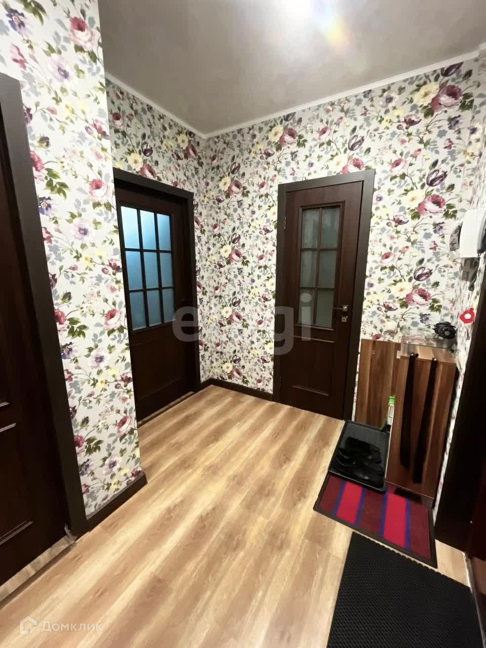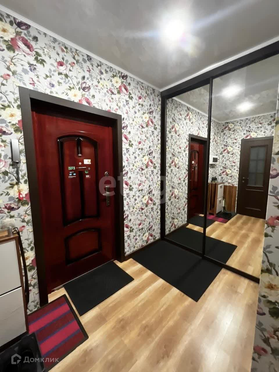 В прихожей встроена просторная гардеробная с зеркальными в полный рост дверьми купе, потолки -натяжные , сплит- система, балкон застеклён панорамными окнами, где слева и справа располагают-ся вместительные шкафы до потолка.